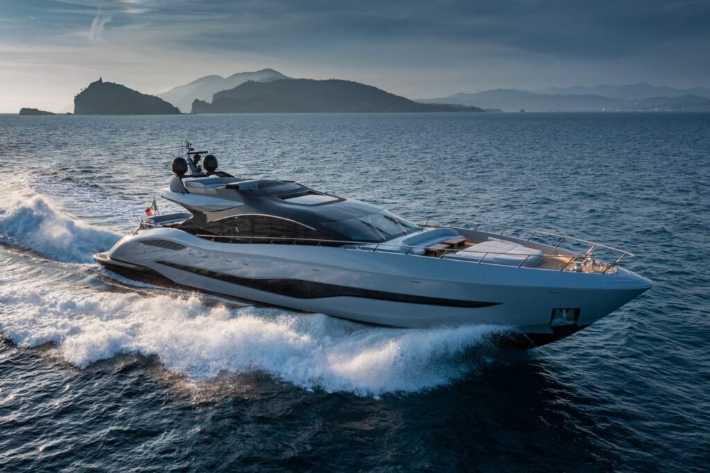 The Mangusta 104 REV is a sleek, high-performance open yacht that combines Italian elegance with cutting-edge technology.