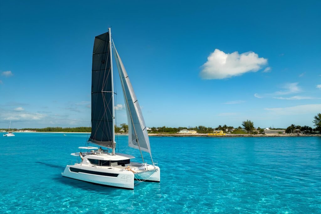 The Leopard 46 is a luxurious catamaran designed for comfortable cruising, offering impressive space and performance on the high seas.