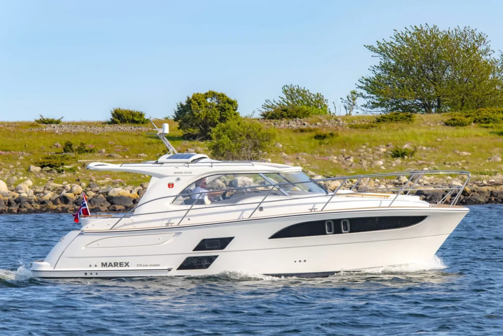 The Marex 310 Sun Cruiser is the epitome of Scandinavian design, offering a spacious layout perfect for weekend getaways and coastal cruising.