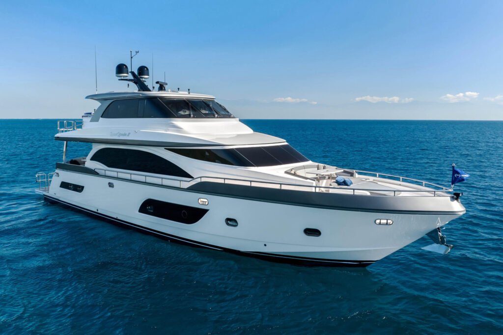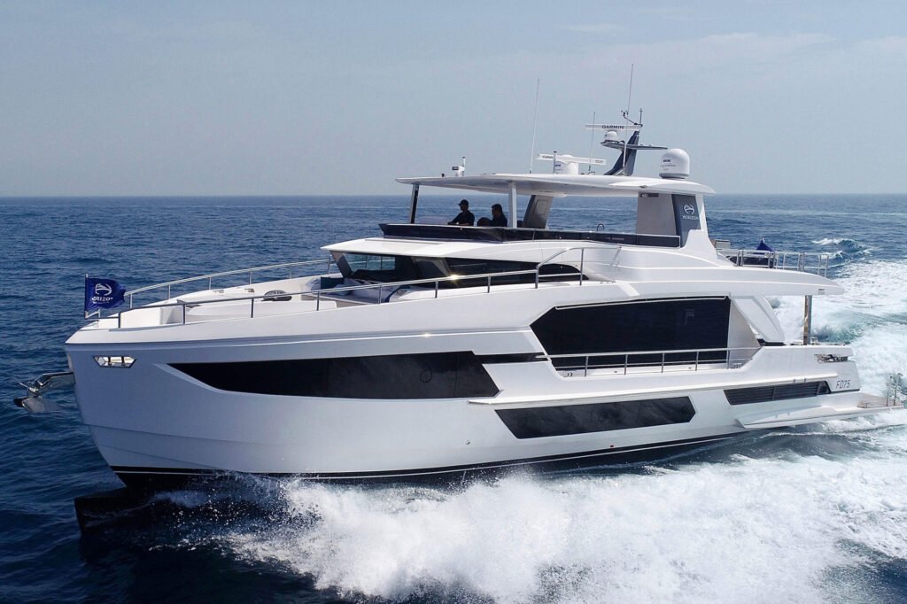 The Horizon Yachts E75 combines luxury and performance, offering an unparalleled yachting experience with its spacious interiors and advanced engineering.