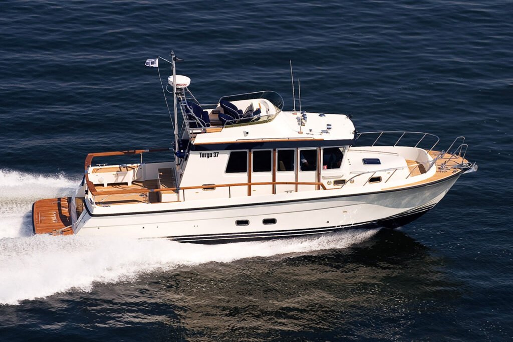 The Targa 37 combines performance and luxury with its sleek design and powerful inboard engines, perfect for thrilling adventures at sea.