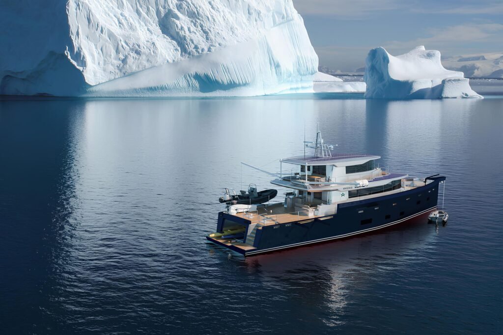 The Arksen 65 is a versatile explorer yacht designed for long-range adventures with a focus on sustainability and innovation.