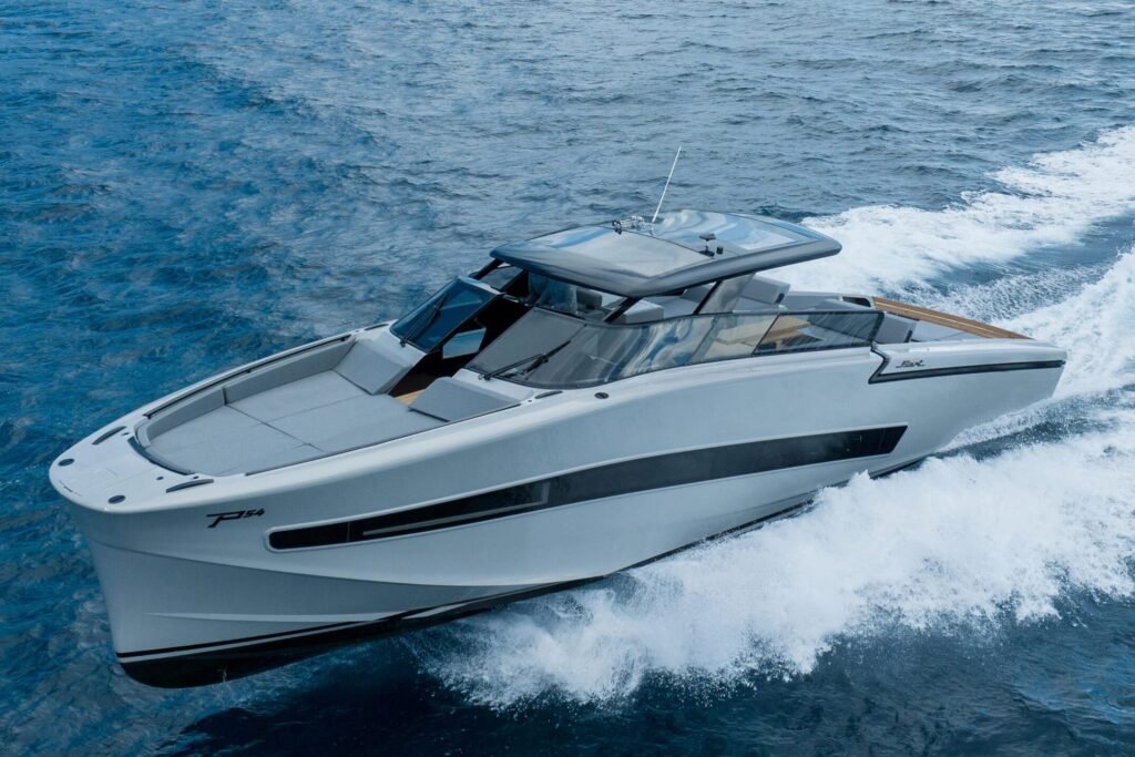 The Fiart P58 combines sleek Italian design with luxurious comfort, offering an exhilarating open-sea experience for discerning yacht enthusiasts.