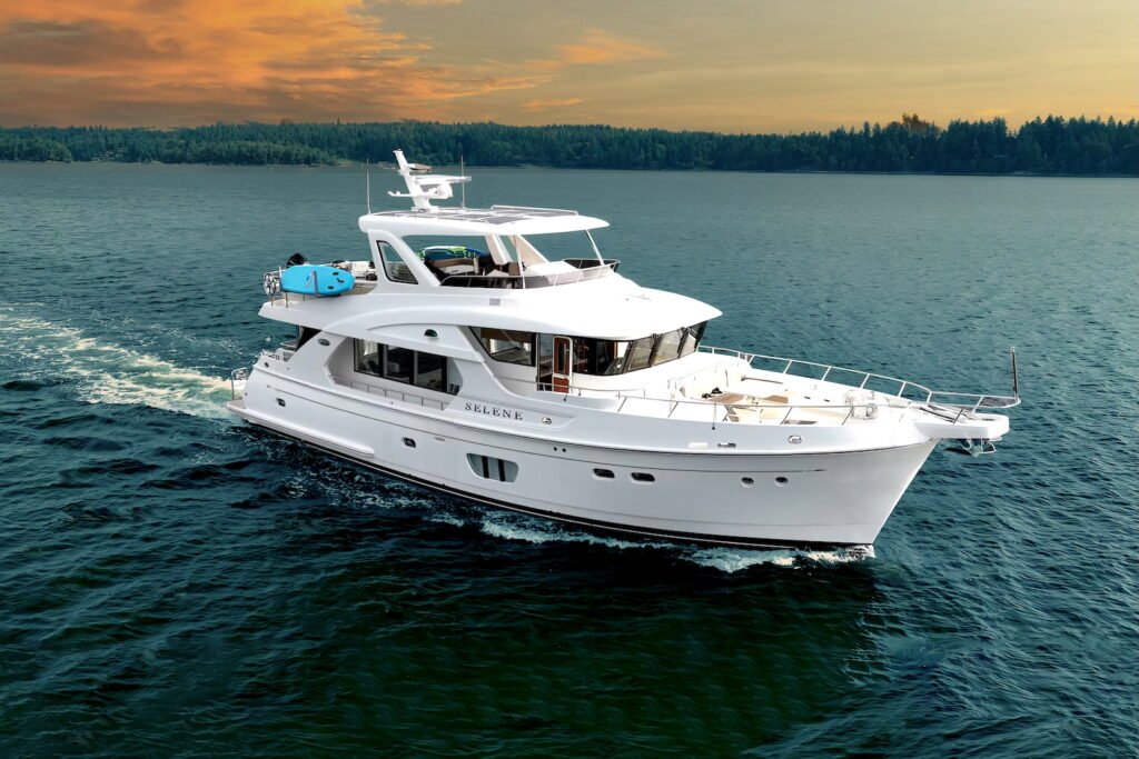 The Selene 54 is a luxurious trawler yacht renowned for its exceptional craftsmanship and long-range cruising capabilities.