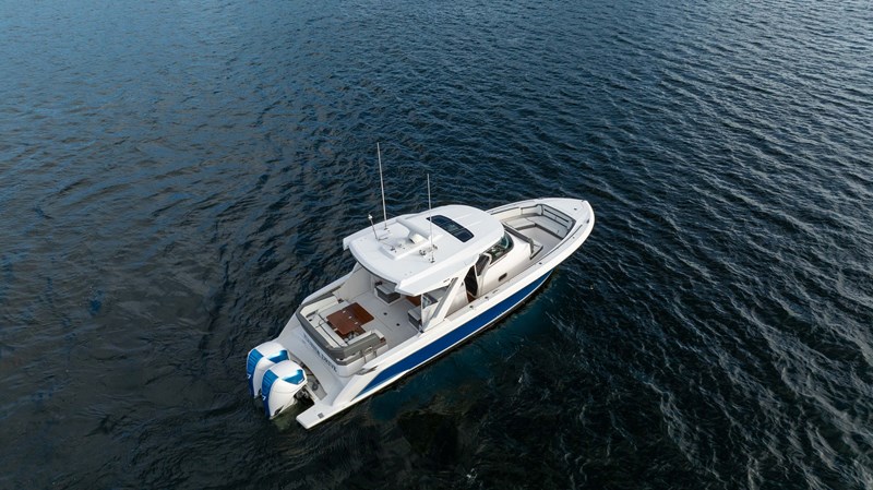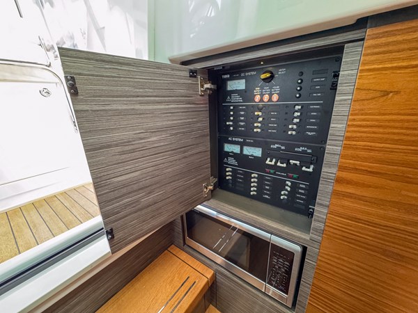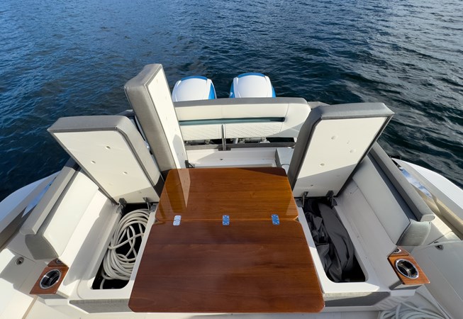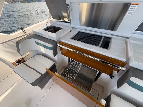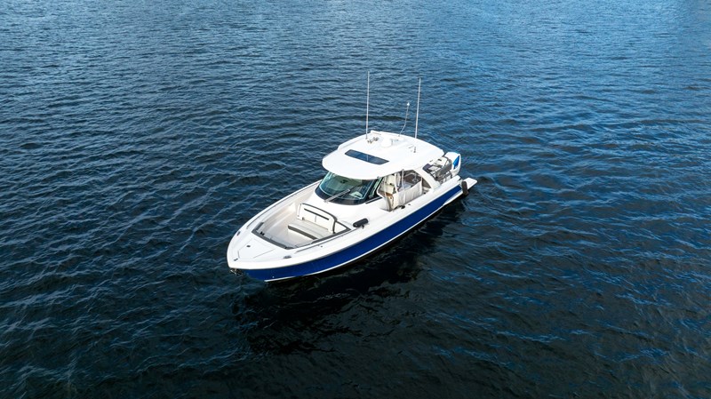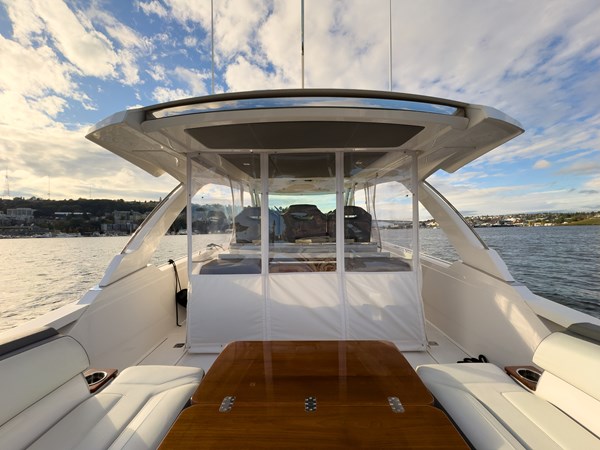 Some highlights include: Sea Keeper, Sun Shade, Convertible Setee Table / Sun Pad that spins 180°, Garmin Electronics, 7.5kw Generator, Joystick Docking, Lewmar Bow Thruster, Covers for all of the Seating, Eisenglass Enclosure, and a Kenyon Grill.