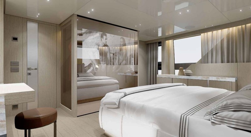 The Sanlorenzo SX100 is a 30.5 m (100 ft) luxury crossover yacht that elevates the SX range with expansive, fluid living spaces seamlessly connected to the sea. Featuring a dramatic lounge that merges with an equipped beach area and side terraces, generous interior volumes, and large panoramic glazing, it creates a yacht-like experience with outstanding indoor-outdoor flow. Designed by Zuccon International Project with refined interiors, the SX100 comfortably accommodates 8 guests and 5 crew , and delivers smooth performance with quad Volvo Penta IPS drives for a top speed of around 23 knots and efficient cruising capability
