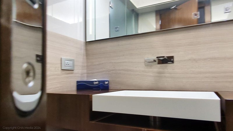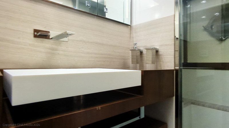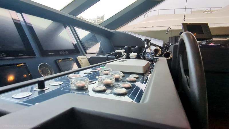 She’s fitted with zero-speed stabilisers for comfort at anchor and underway.