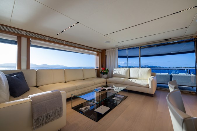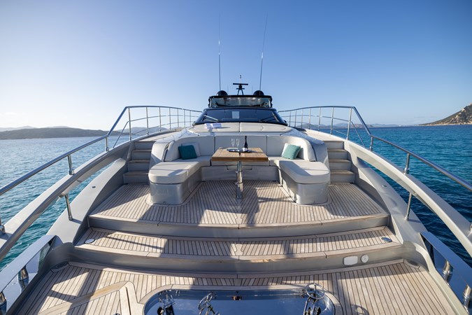 Outdoor living is at the heart of the F100 experience, with multiple deck spaces designed for both relaxation and entertainment. The expansive sun deck can be customized to include a jacuzzi, a full outdoor bar, or a spacious sun lounge, creating the perfect setting for unwinding at sea. The aft deck features an elegant dining space, seamlessly connecting to the salon for indoor-outdoor living. Forward, the private lounging area offers an intimate escape, ideal for sunbathing or enjoying sunset cocktails. The retractable swim platform and fully equipped beach club at the transom provide easy access to the water, making this yacht ideal for water sports and days spent exploring remote anchorages.