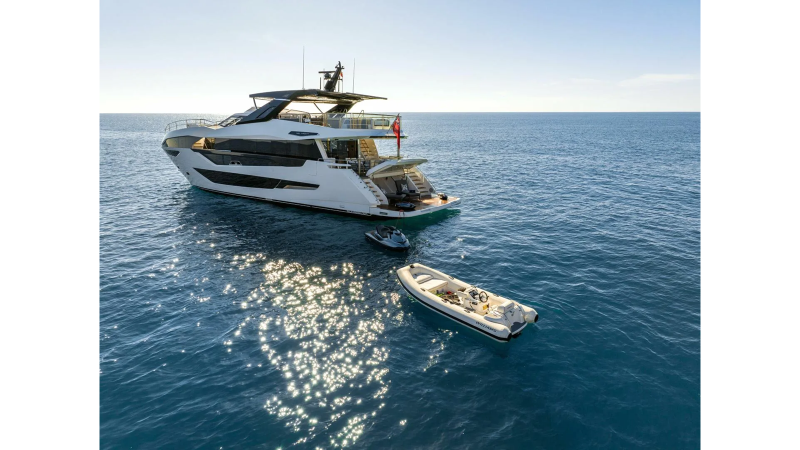 The all-new Sunseeker 100 Yacht is the epitome of a luxury yacht. Powered by MTU 12V 2000 M96X engines, the 100 Yacht accommodates up to twelve guests and five crew in complete luxury, reaching speeds of up to 30 knots.