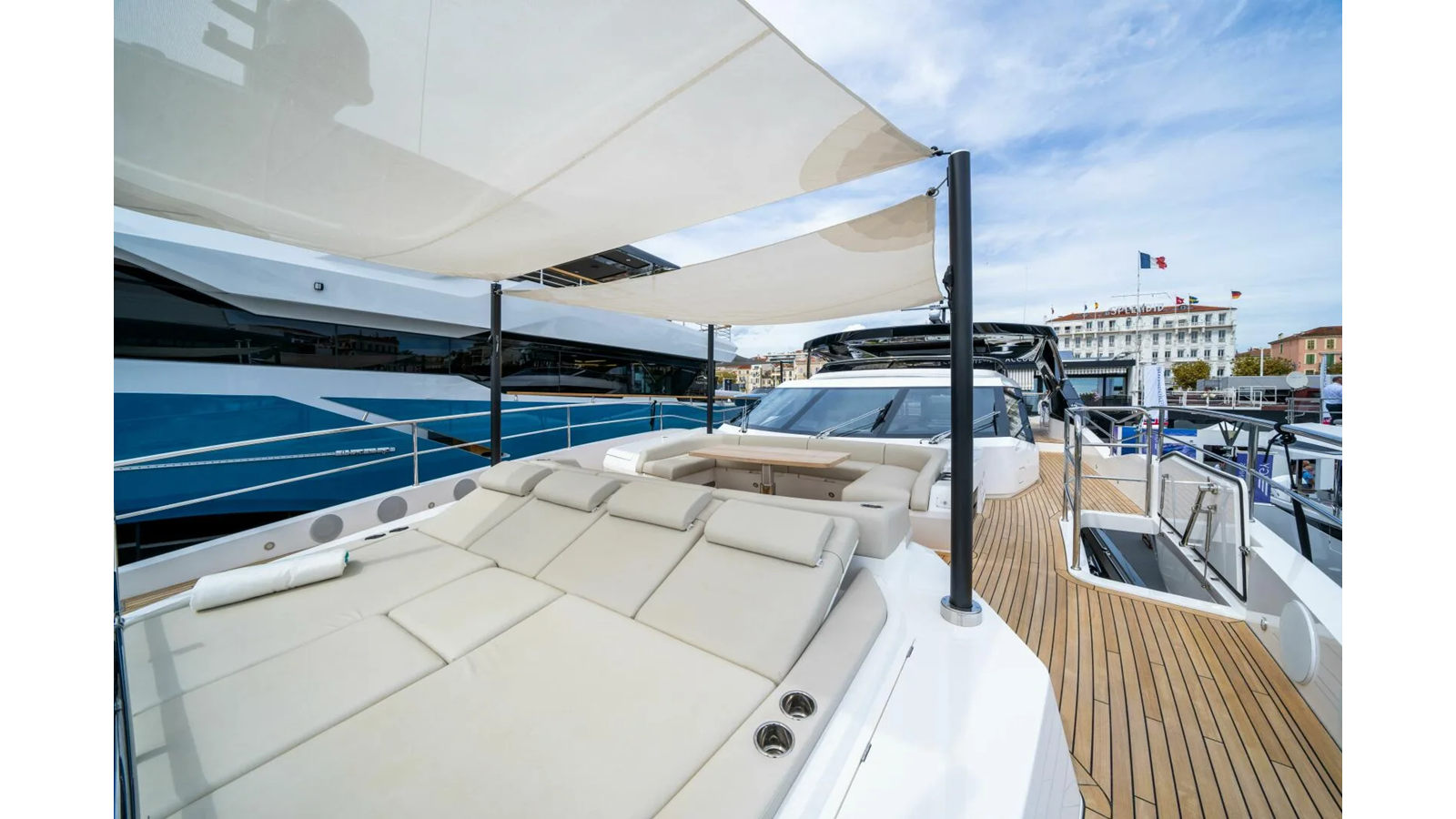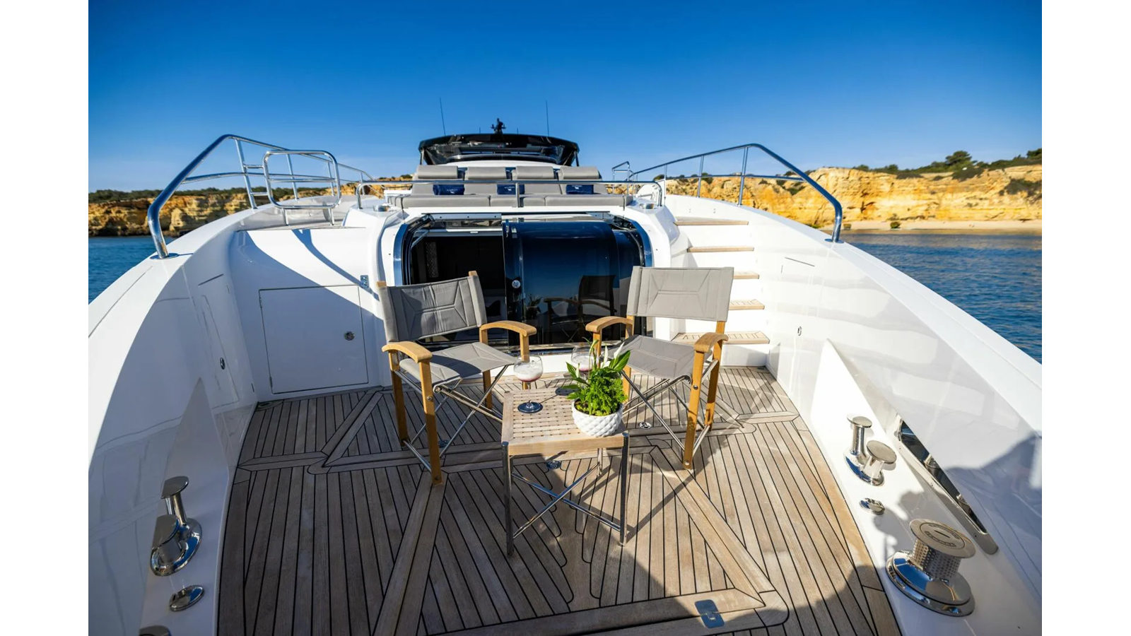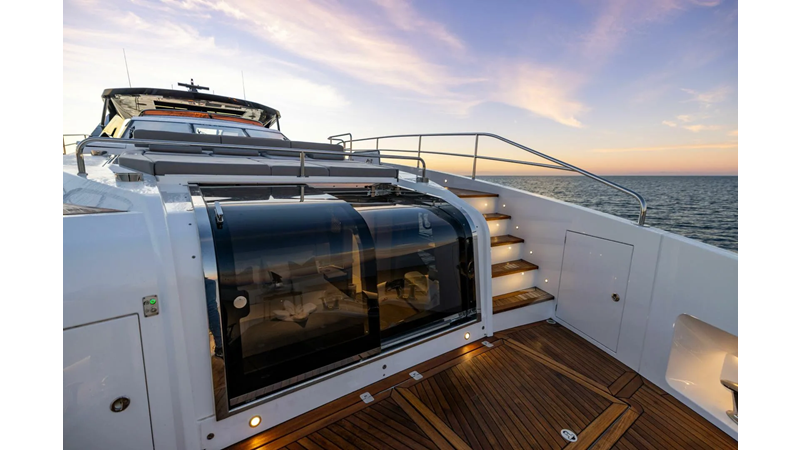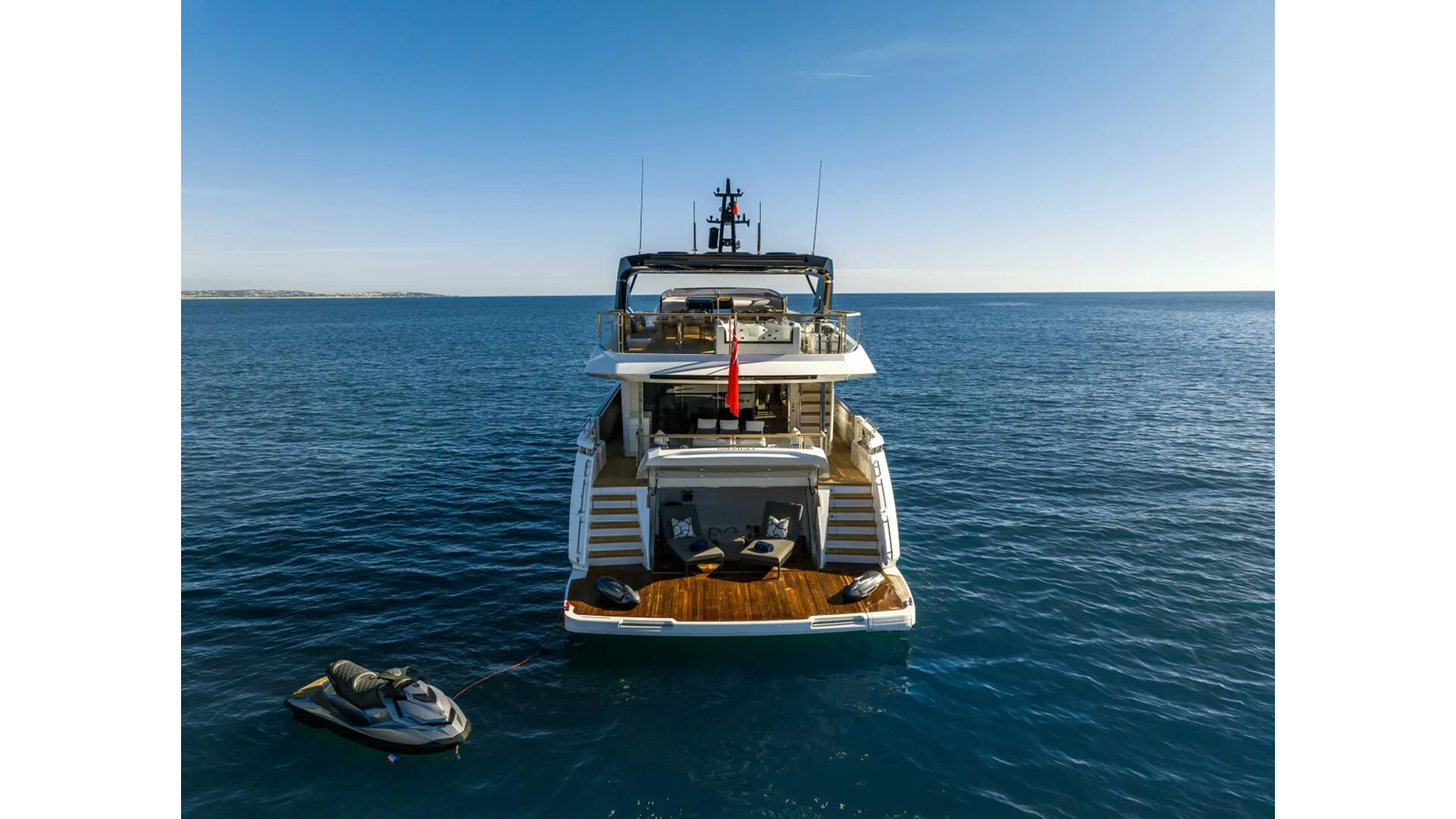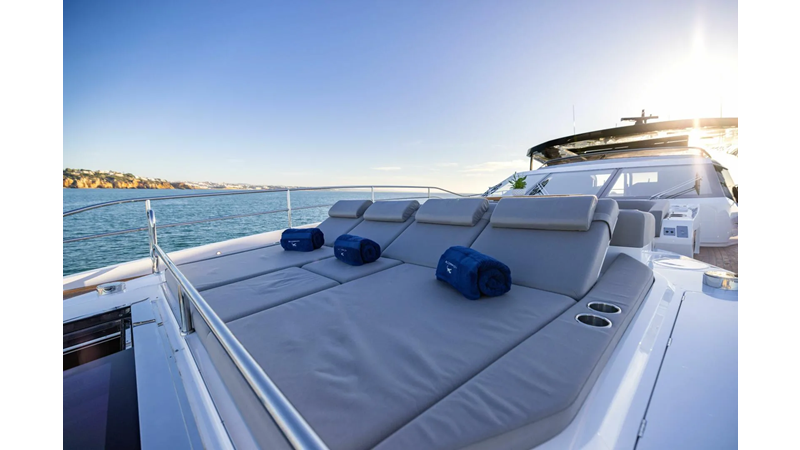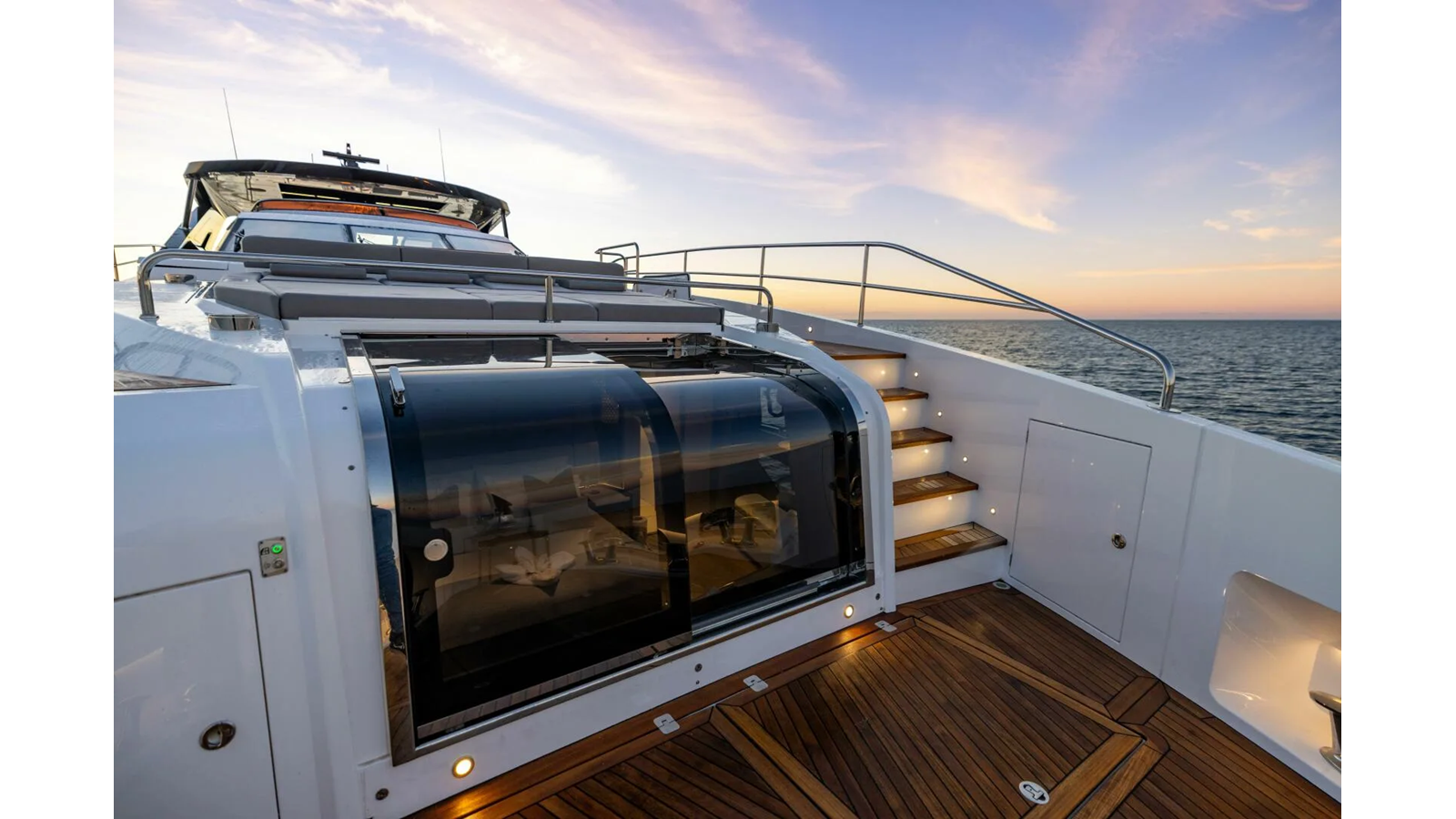 A striking Owner Stateroom forward with a private bow terrace, sunbathing hideaways, a breathtaking single-level exterior deck from flybridge to foredeck, a beautifully proportioned open-plan interior and generous âBeach Clubâ, just a few of her magnificent features.