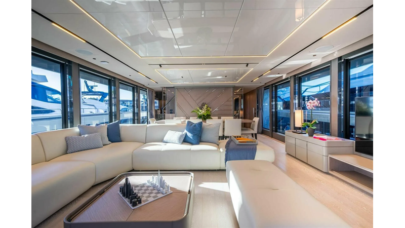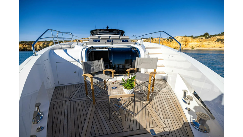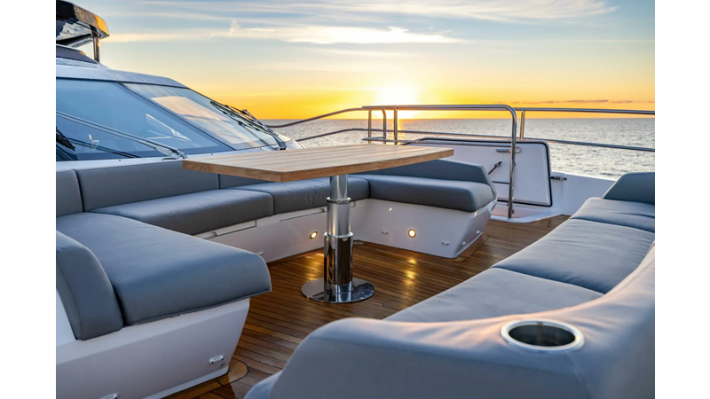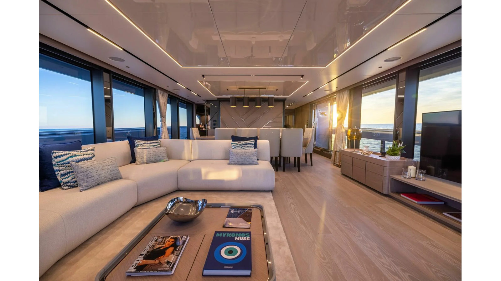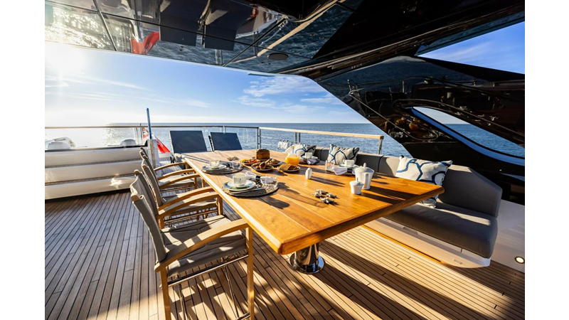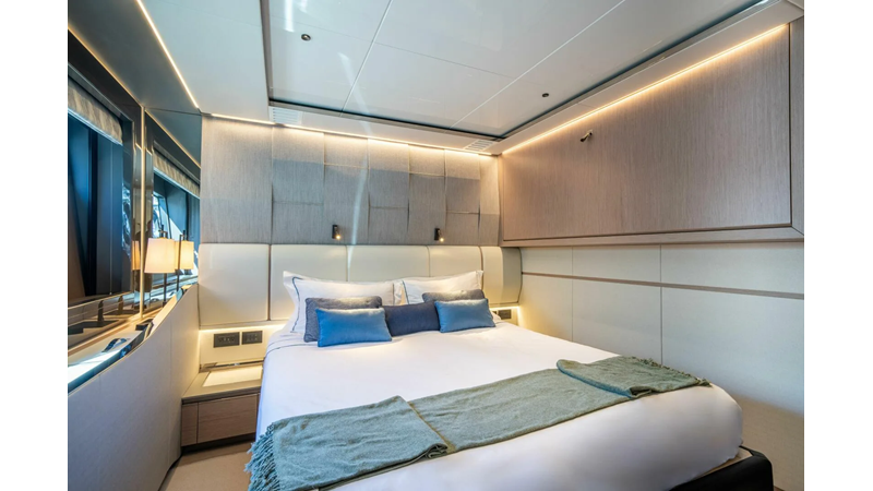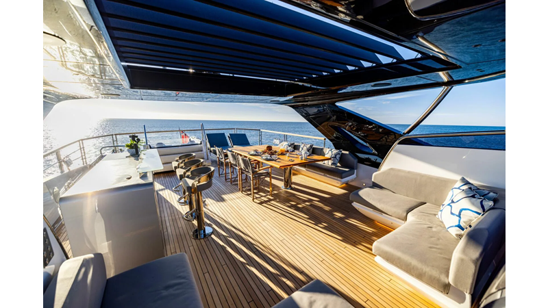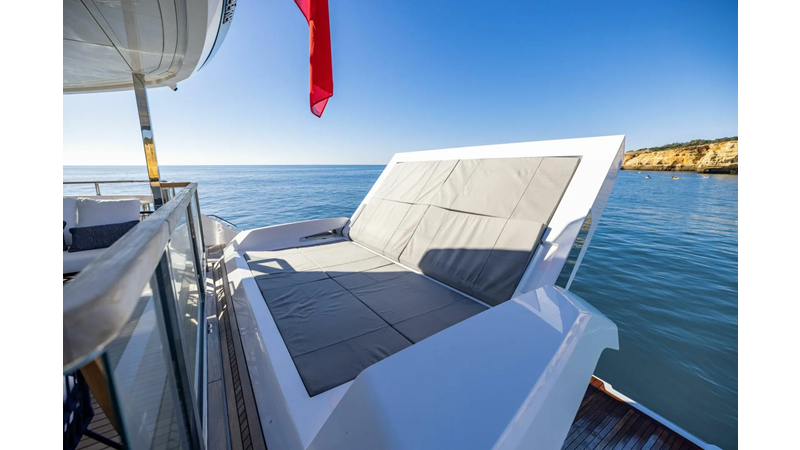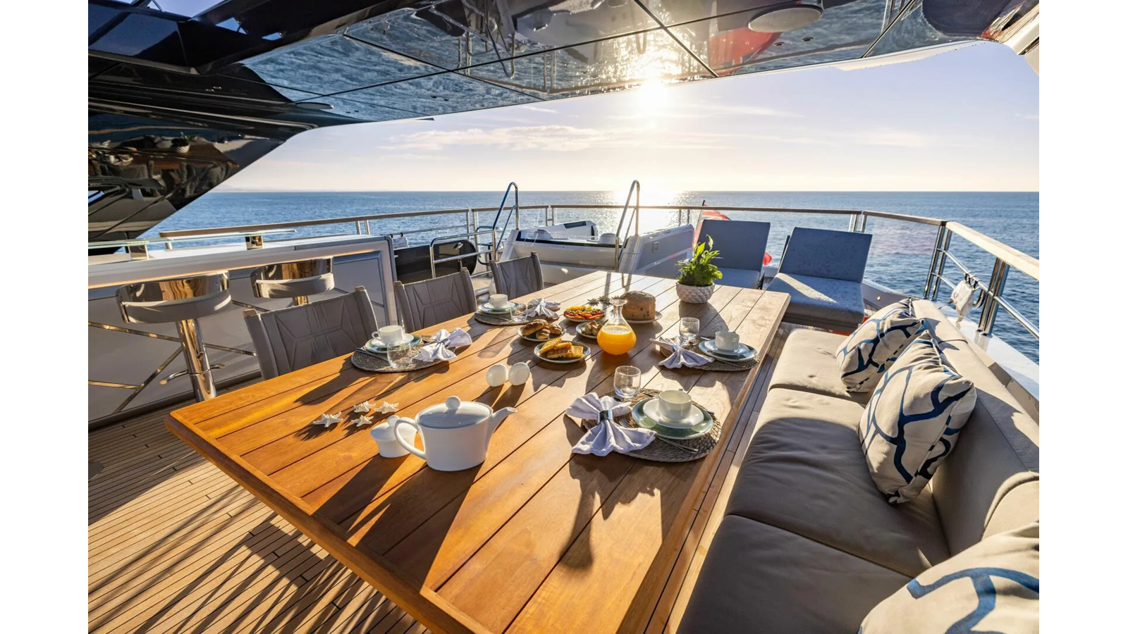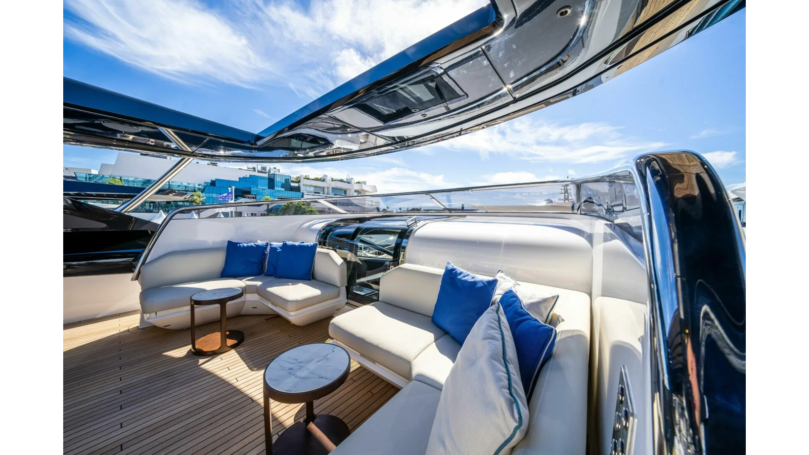 A striking Owner Stateroom forward with a private bow terrace, sunbathing hideaways, a breathtaking single-level exterior deck from flybridge to foredeck, a beautifully proportioned open-plan interior and generous âBeach Clubâ, just a few of her magnificent features.