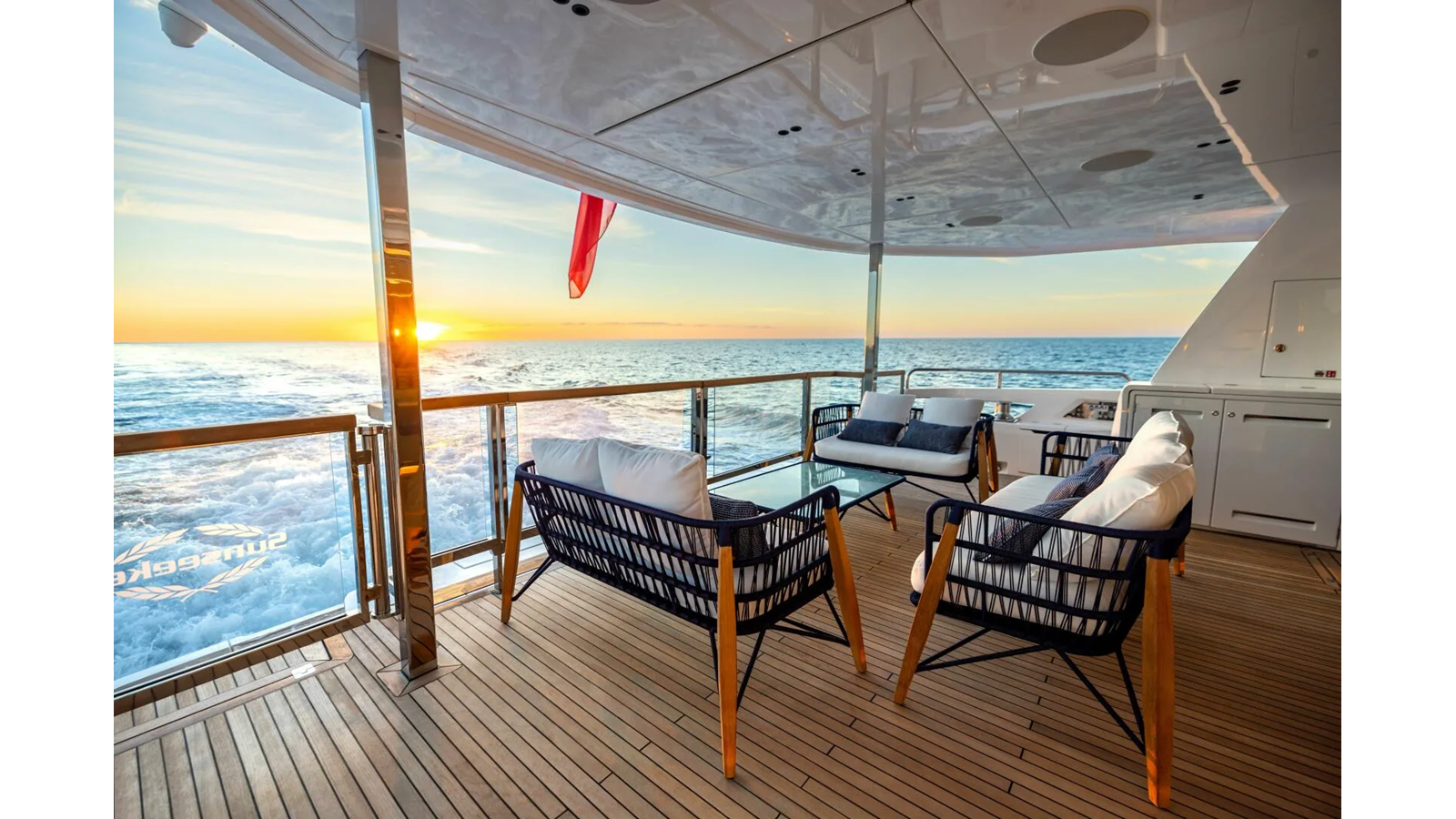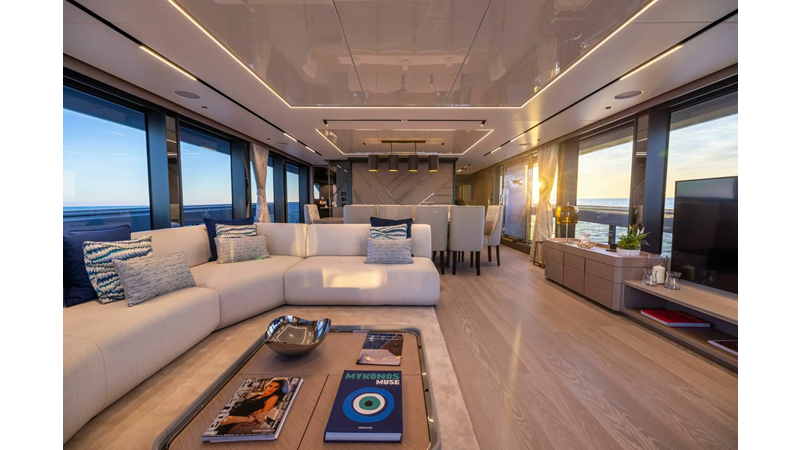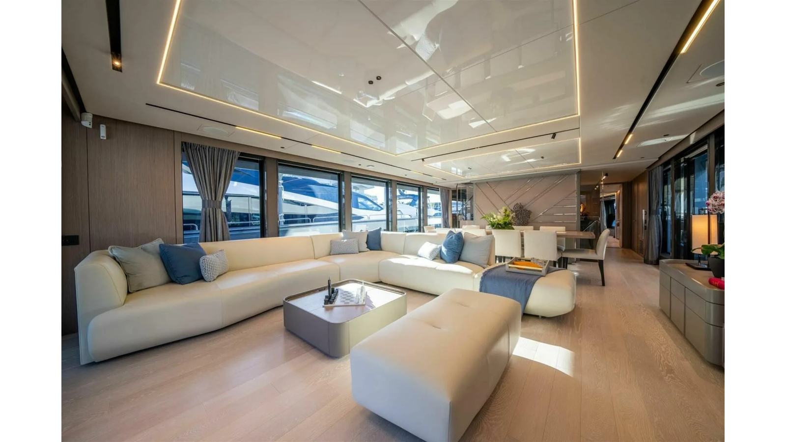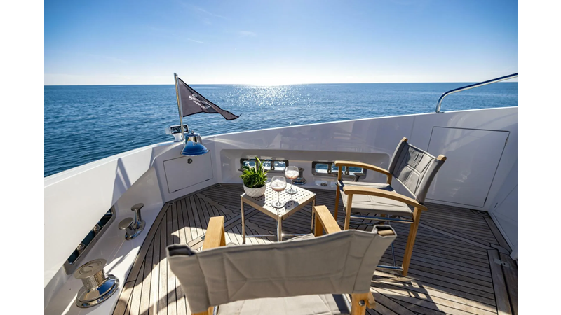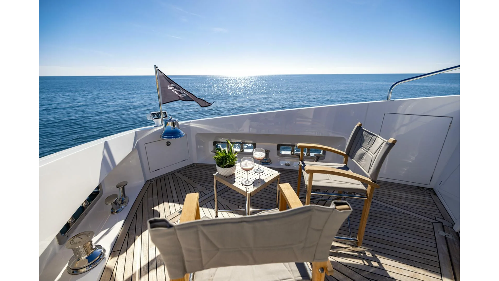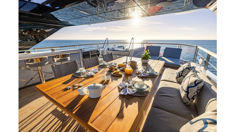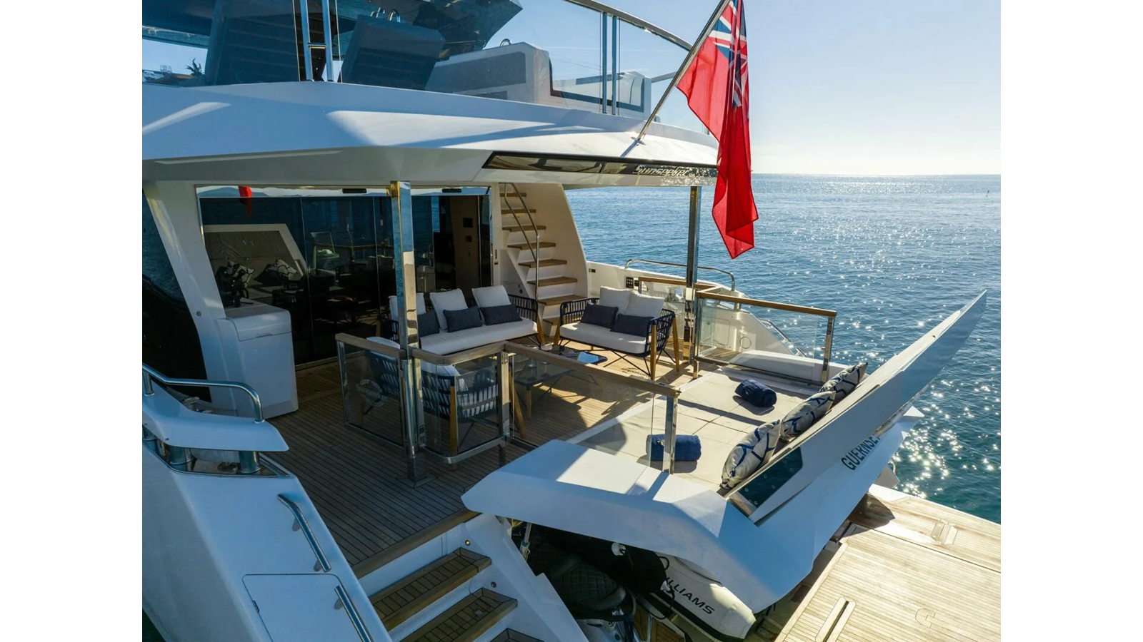 A striking Owner Stateroom forward with a private bow terrace, sunbathing hideaways, a breathtaking single-level exterior deck from flybridge to foredeck, a beautifully proportioned open-plan interior and generous âBeach Clubâ, just a few of her magnificent features.