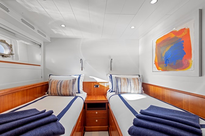 ARCHIPELAGOoffersthesmartyachtinvestoracompellingpackageandanexcellent pedigree that will hold its value. Her seaworthiness is proven, and she boasts a long-range capability of nearly 4,500nm, giving her ocean crossing capability. A full displacement yacht with a top speed of 12 knots, she cruises comfortably and quietly at 11 knots powered by twin 1,015hp Caterpillar C18 with low engine hours.