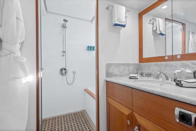 In pristine condition inside and out, as well as her master suite she also offers four additional cabins on the lower deck– making an excellent family-friendly flexible layout or for potential charter use.