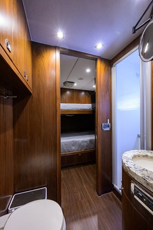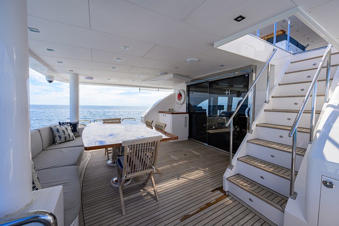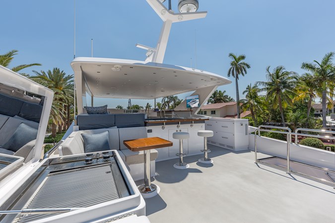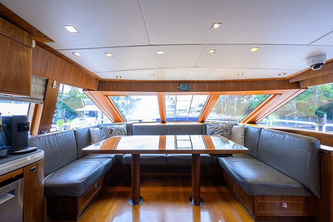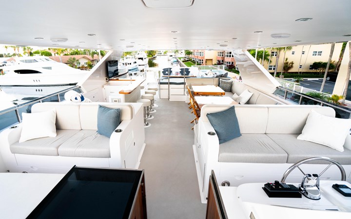 She offers over 3,500 square feet of interior and exterior living space across the flybridge, main deck, and lower deck, and more importantly, that space is felt in all the right areas. There is excellent storage throughout, and a sense of volume that is difficult to find in comparable yachts.