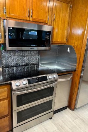 The Fly Bridge includes a bar with Wine Cooler and Fridge . The Galley has all new t op of the line Samsung appliances : Smooth-Top Range with Microwave / Convection Oven mounted above, Dishwasher, and a Sub-Zero Refrigerator/ Freezer. The Salon includes a large Samsung curved screen TV with incredible 5.1 surround sound .