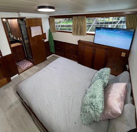 Casual Luxury and unmatched space with 3 expansive decks . Perfect for Family Live aboard or vacations and entertaining.The ultra-wide 28 foot beam , full walk-around decks , and spacious living areas offer an exceptional level of comfort, space and convenience. Accommodations include 5 en-suite Staterooms, 3 refrigerators, two chest freezers and lots of storage .