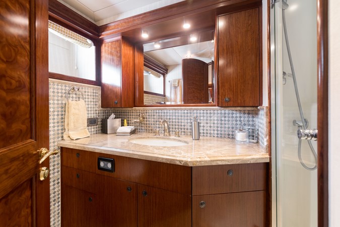 REPOSADO is a fine example of a raised pilothouse motoryacht with excellent seakeeping ability, ease of maintenance, and well-engineered systems. Her fiberglass construction helps minimize long-term maintenance issues, and her versatile layout with a large country kitchen and four guest staterooms makes her popular with owners and crew alike.