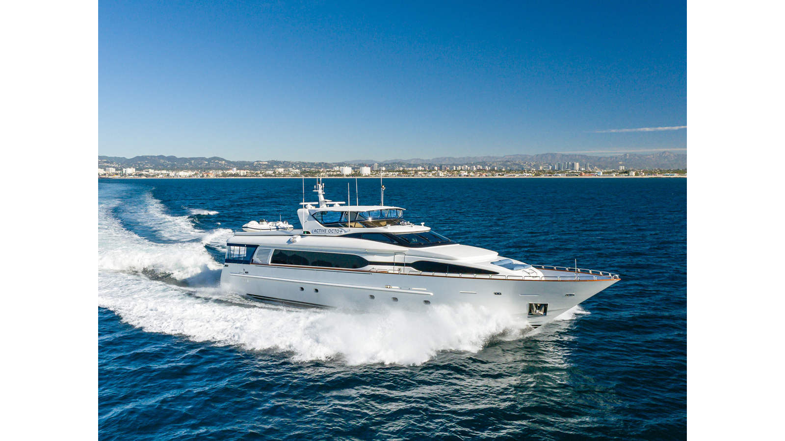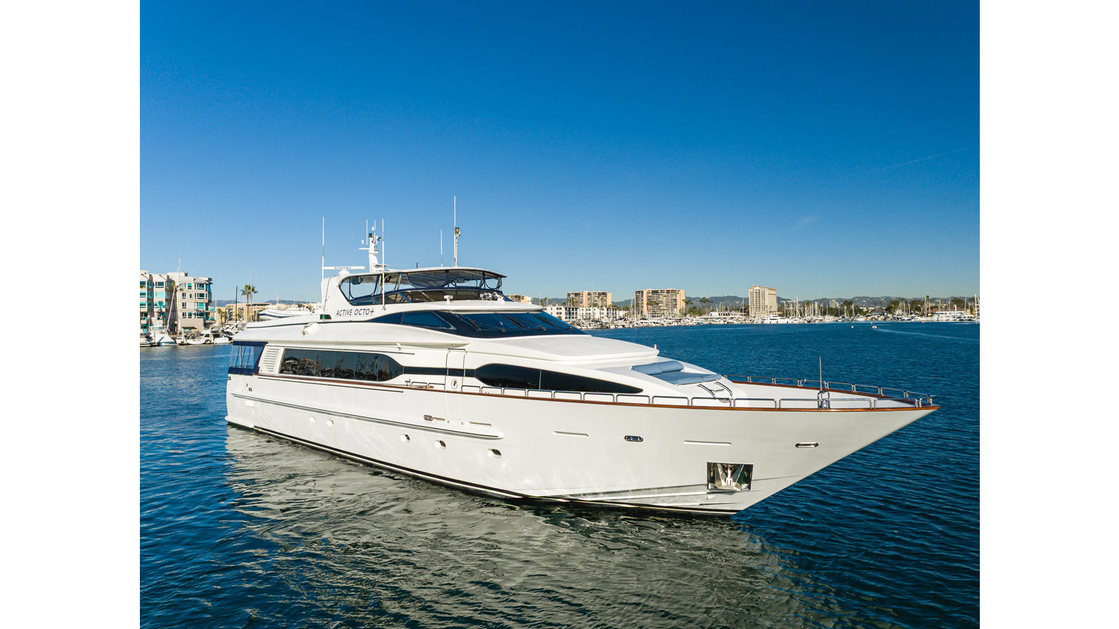 ACTIVE OCTO is a standout 104’ Destiny motor yacht, blending exceptional volume, renowned pedigree, and superior build quality. Designed by Evan K. Marshall, she offers timeless elegance with modern sophistication, highlighted by her wide-body design that maximizes interior and exterior living spaces.