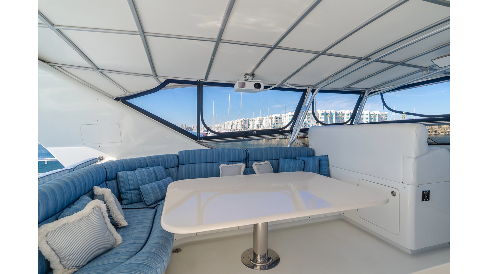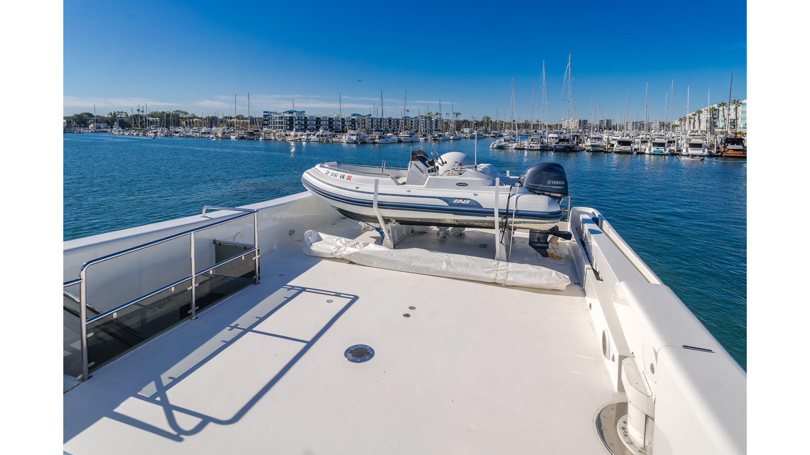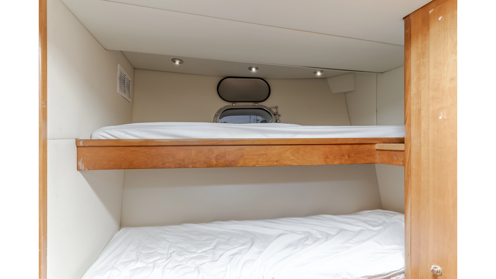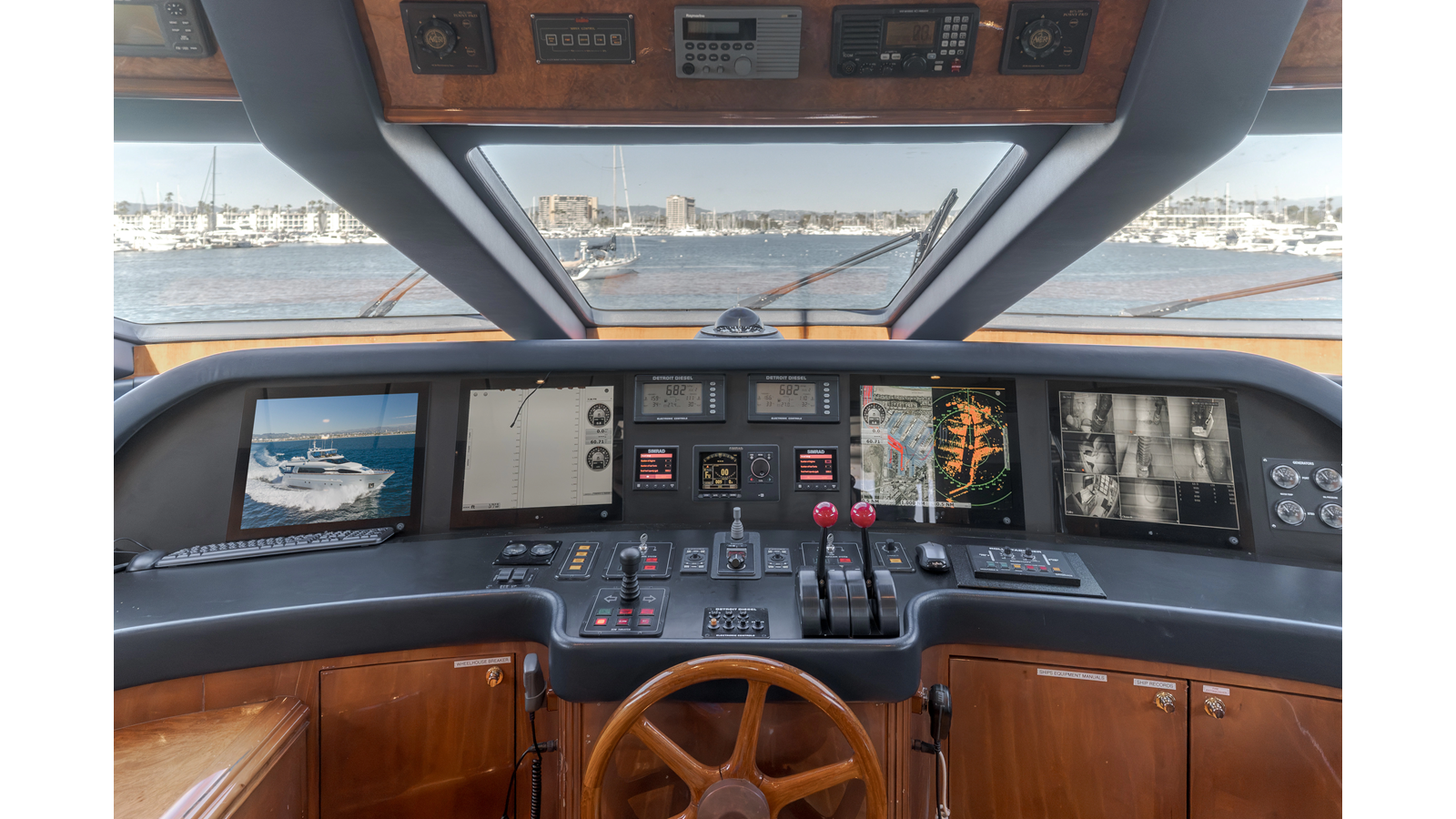 Accommodations for up to eight guests include four beautifully appointed staterooms. The full-beam, bi-level master suite on the main deck provides exceptional privacy, complemented by a second impressive full-beam master on the lower deck with his-and-hers baths. Two additional guest staterooms (one double, one twin) each feature en-suite bathrooms.