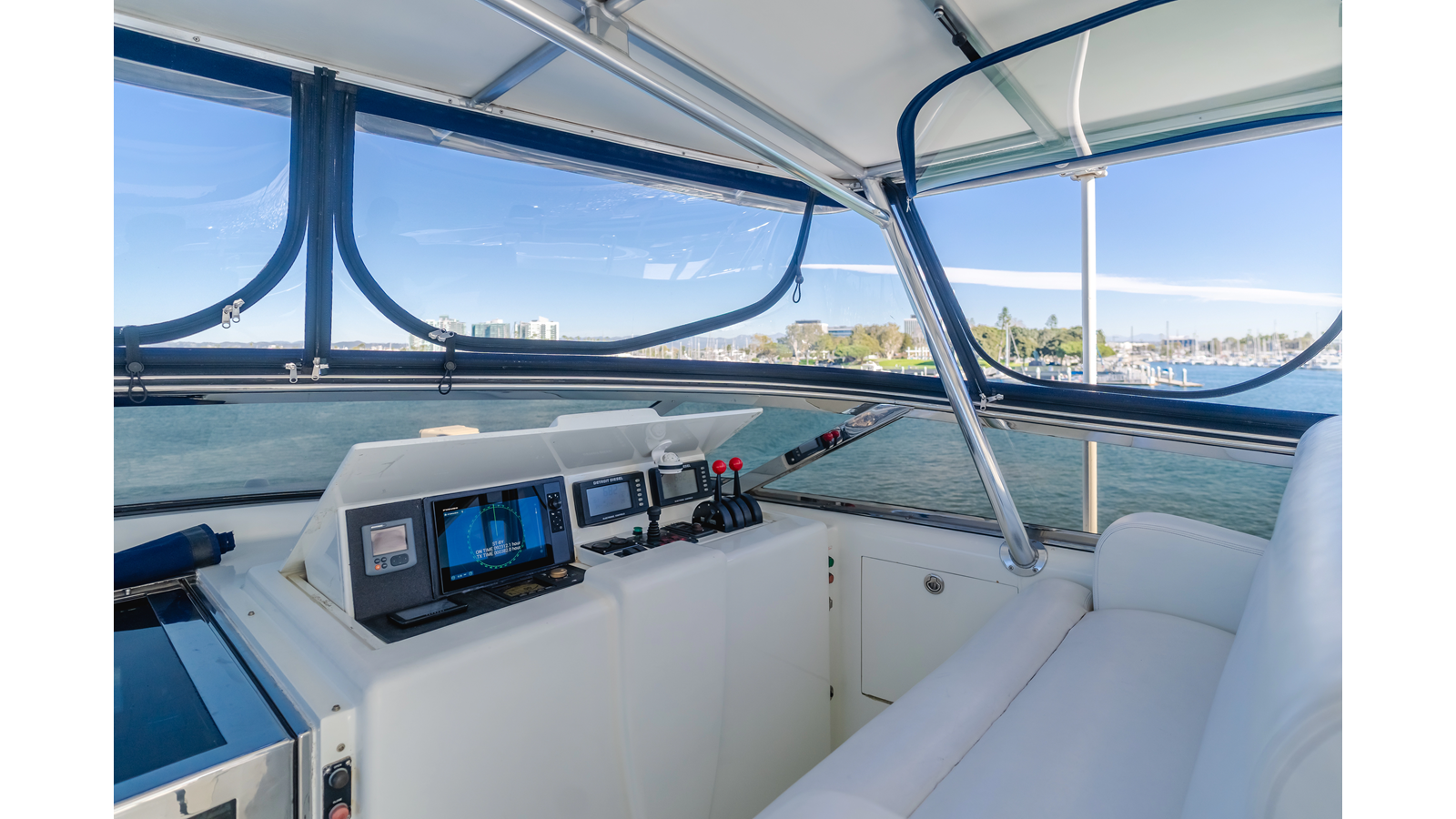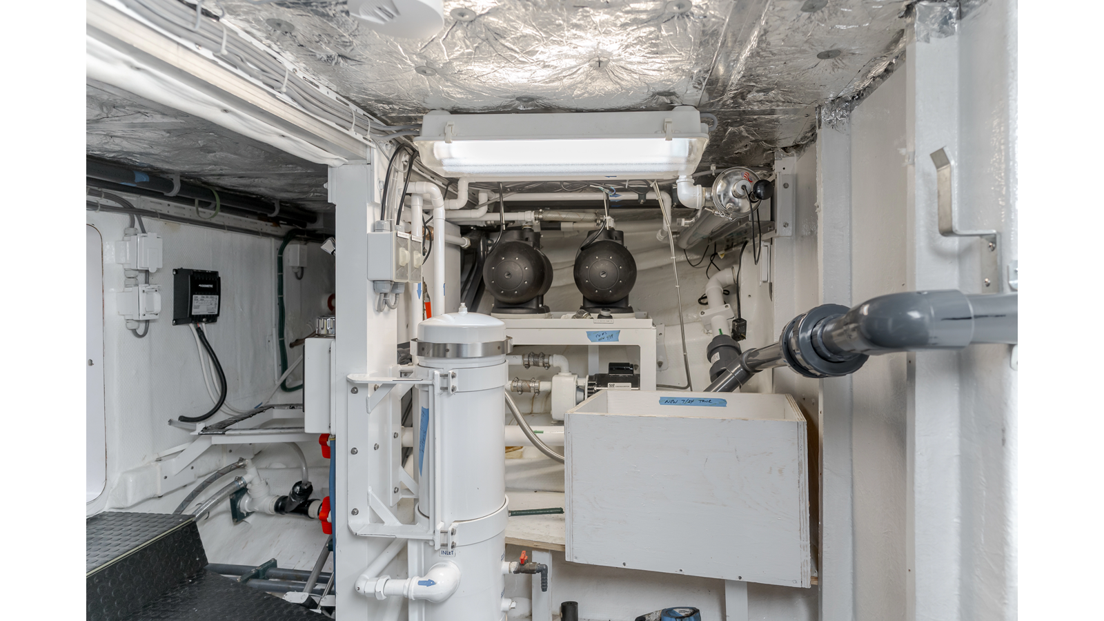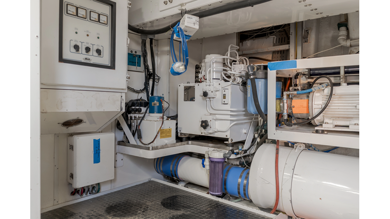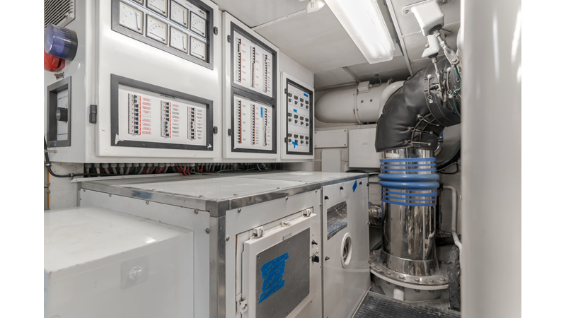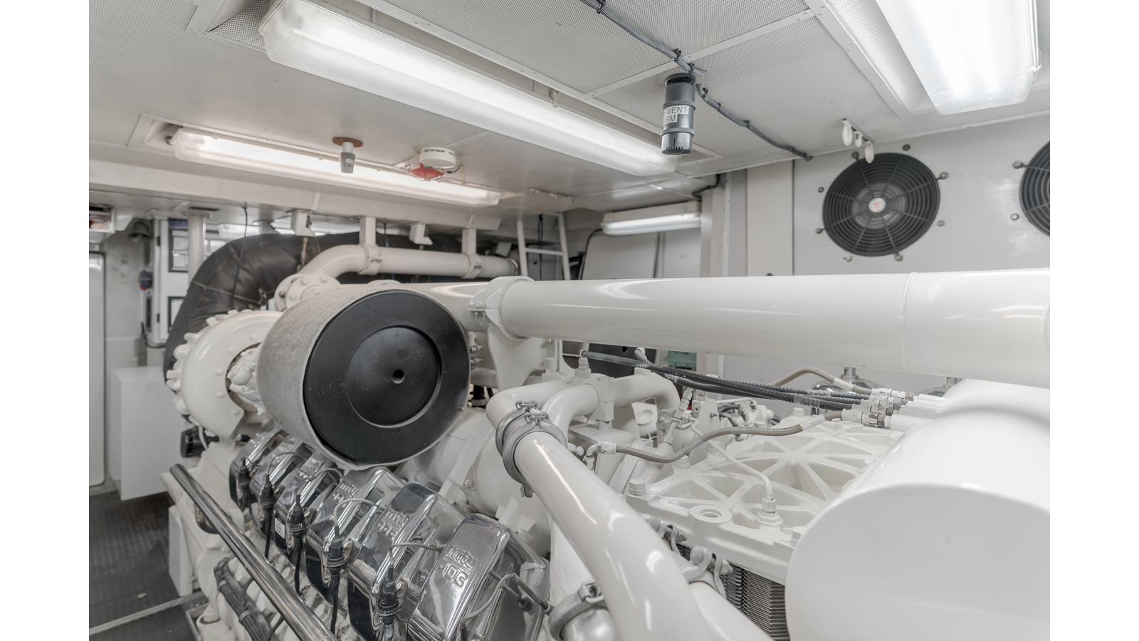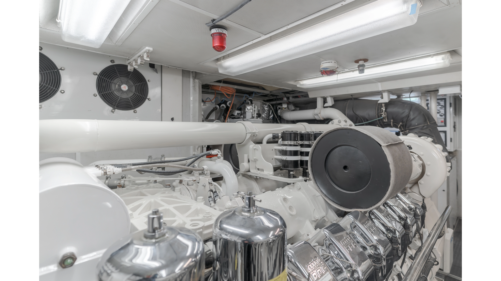Accommodations for up to eight guests include four beautifully appointed staterooms. The full-beam, bi-level master suite on the main deck provides exceptional privacy, complemented by a second impressive full-beam master on the lower deck with his-and-hers baths. Two additional guest staterooms (one double, one twin) each feature en-suite bathrooms.