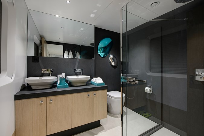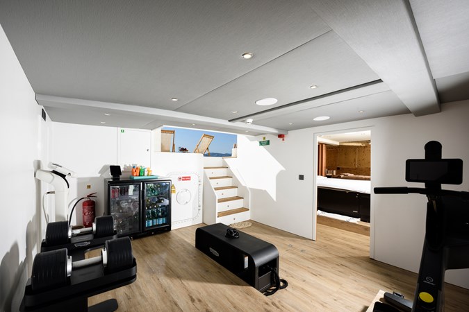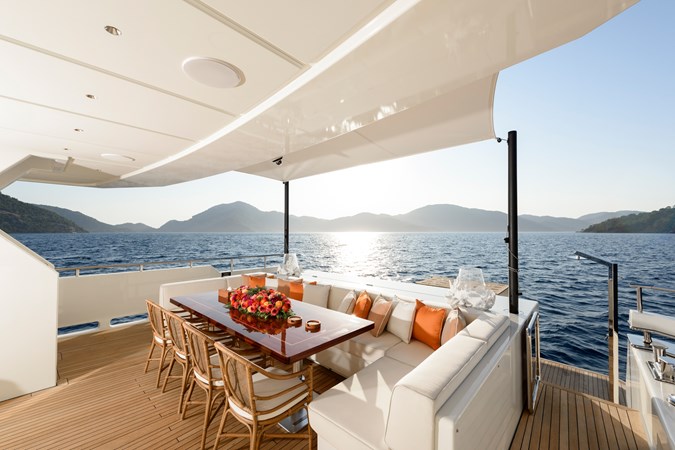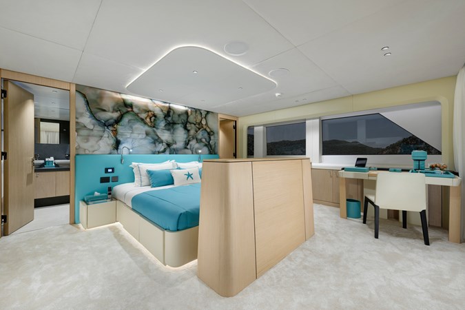 From a technical and lifestyle perspective, she offers an exceptionally well-balanced platform. A full-beam 20 m² owner’s suite, five en-suite staterooms accommodating up to 10 guests, and standout wellness features such as a Turkish Hammam and sundeck Jacuzzi place her firmly at the top of her class in terms of onboard experience.
