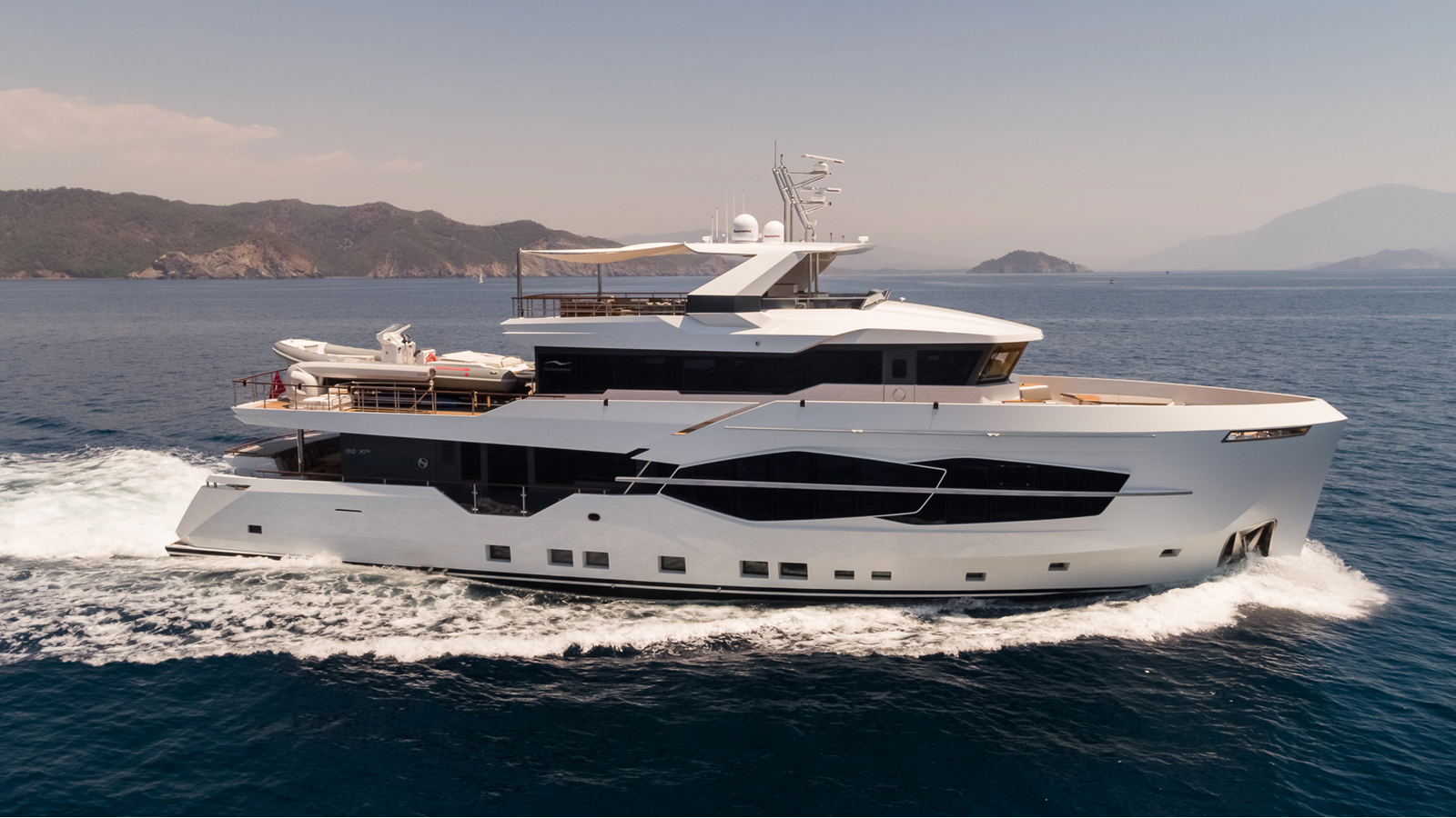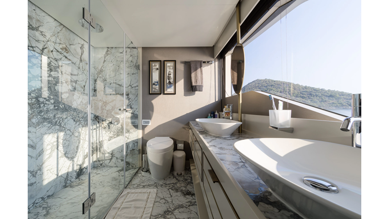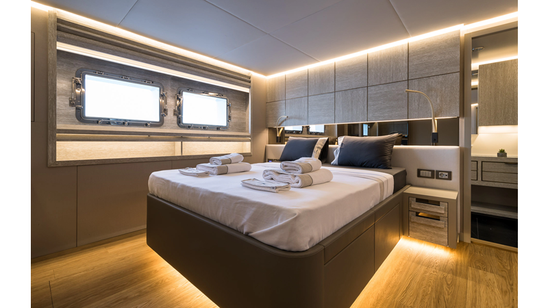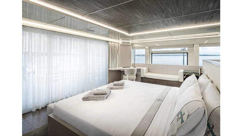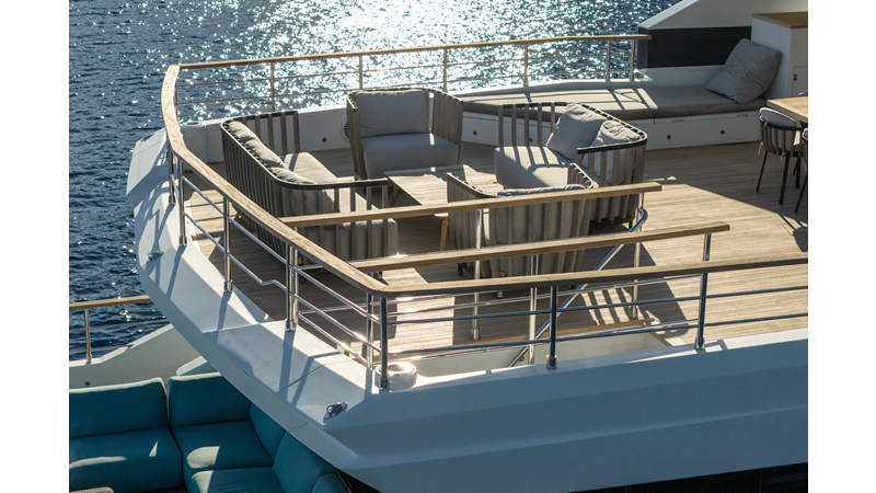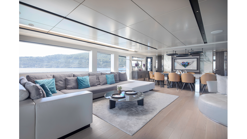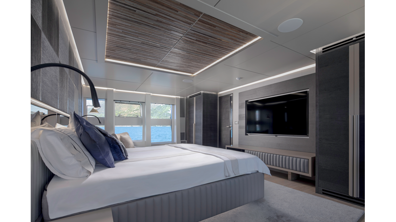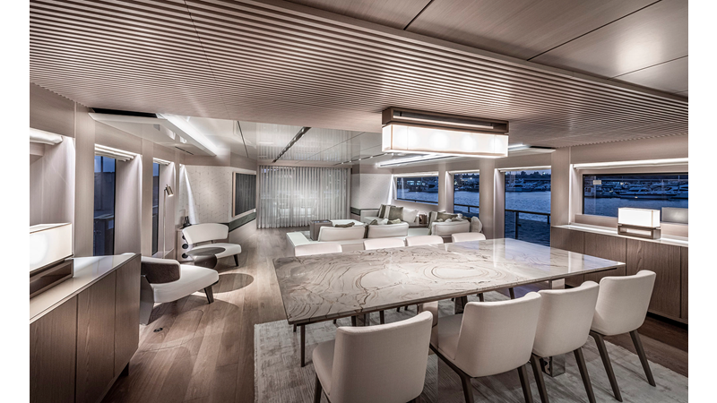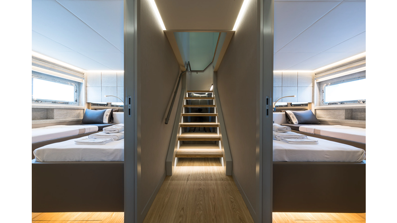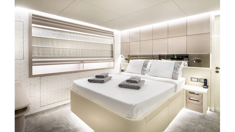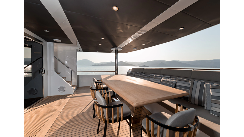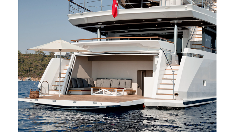 Opacmare Transformer IMO Tier III engines are an option and are essentially becoming required for new build deliveries in 2024 and later due to new EPA requirements. Her large open upper deck features a massive 2,500kg davit allowing you to carry up to a 8.5m tender plus additional water sports toys. (Hull #2 carries a 28ft Axopar on deck). A new layout created for North American clients features a country kitchen forward on the main deck allowing a more casual gathering place for guests and crew for meals.