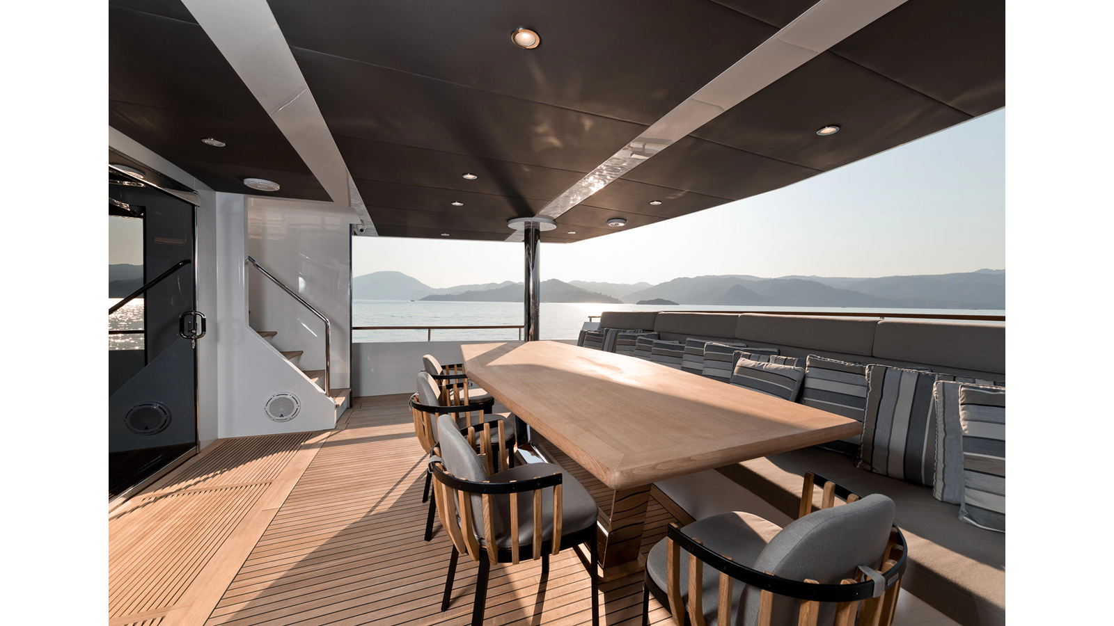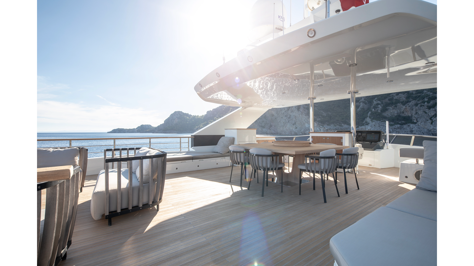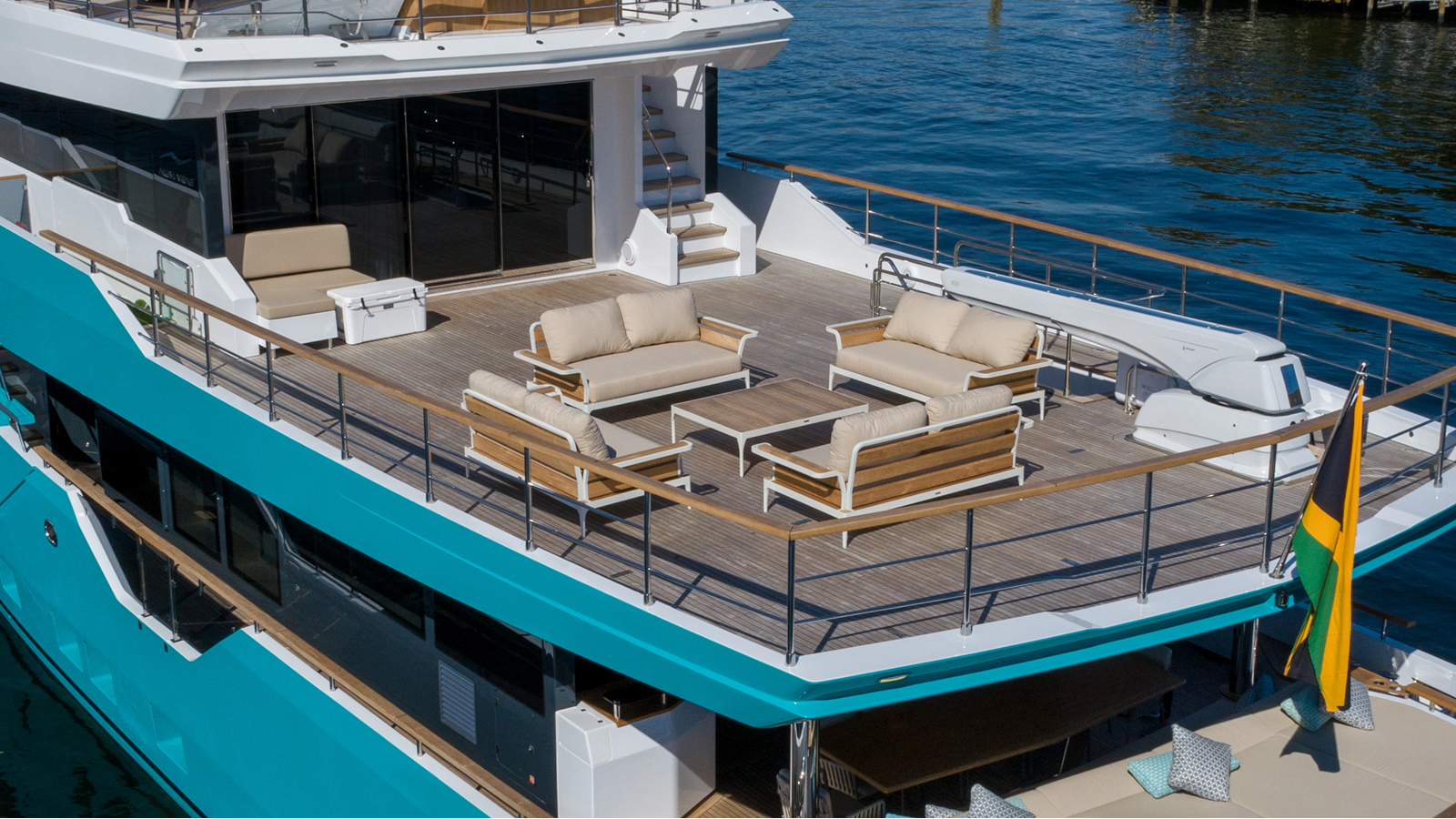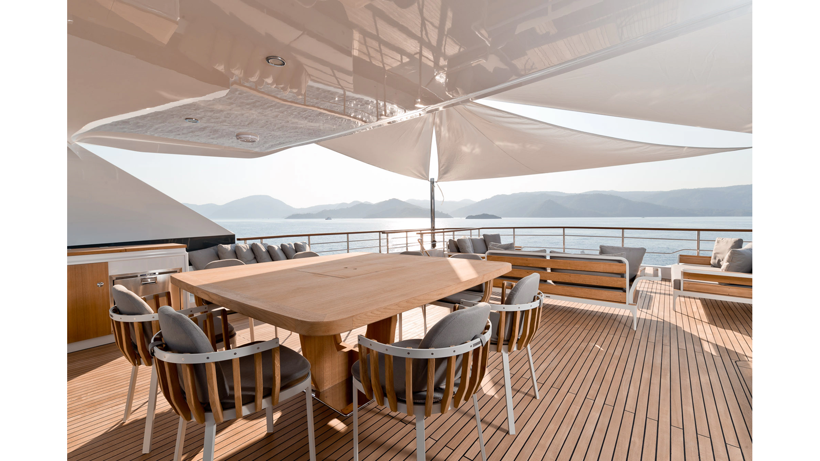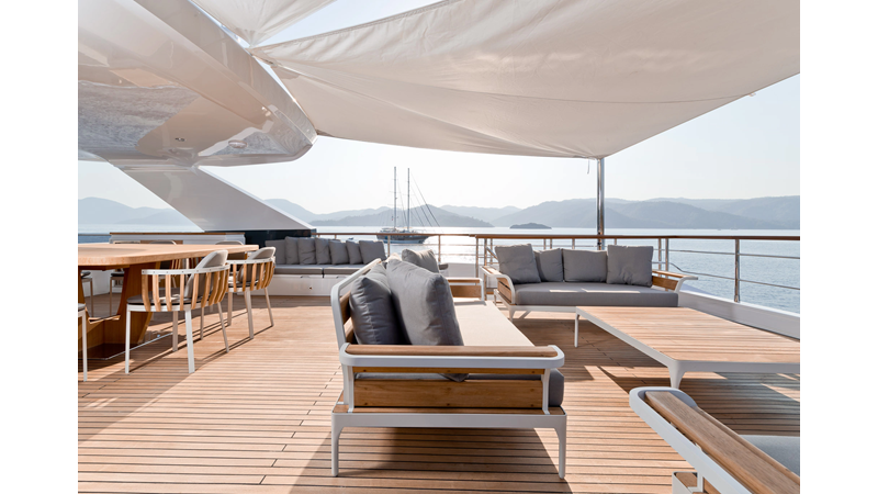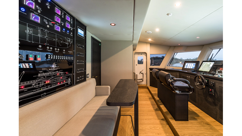 Opacmare Transformer IMO Tier III engines are an option and are essentially becoming required for new build deliveries in 2024 and later due to new EPA requirements. Her large open upper deck features a massive 2,500kg davit allowing you to carry up to a 8.5m tender plus additional water sports toys. (Hull #2 carries a 28ft Axopar on deck). A new layout created for North American clients features a country kitchen forward on the main deck allowing a more casual gathering place for guests and crew for meals.