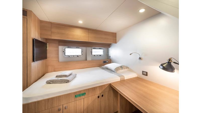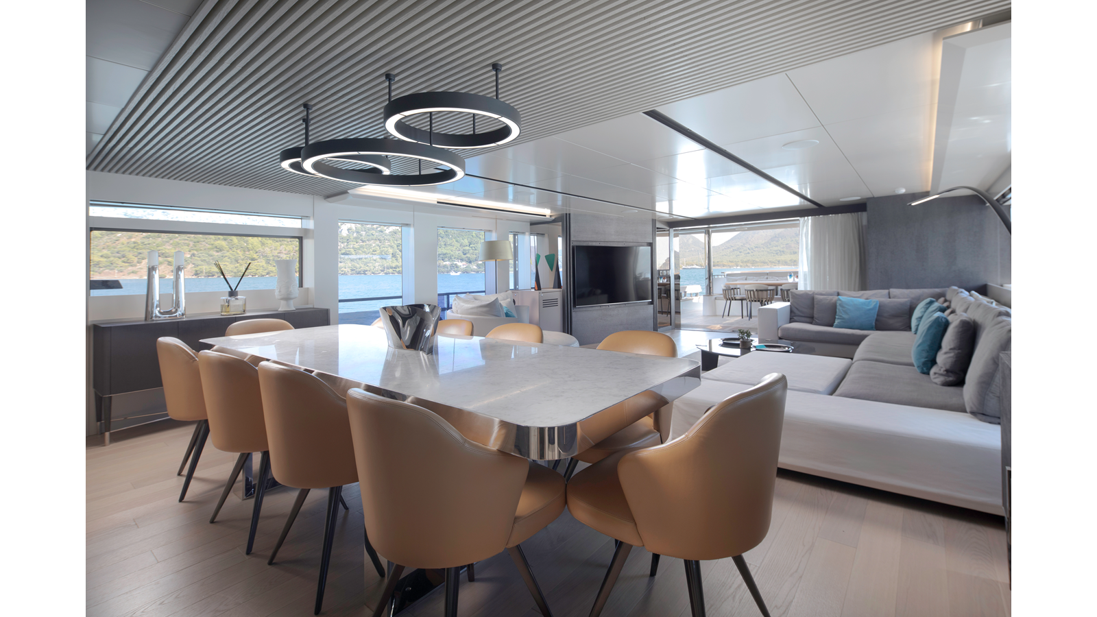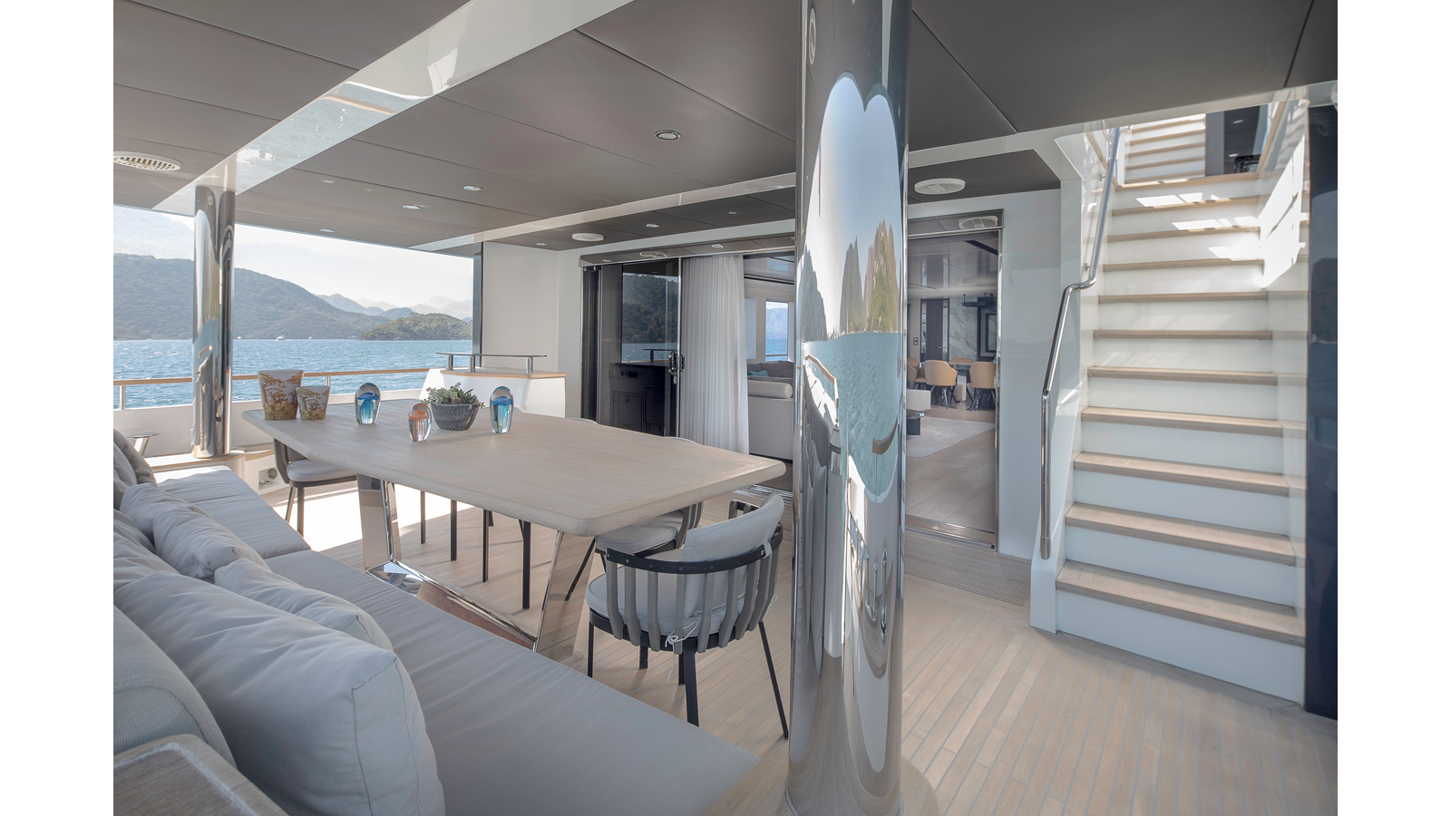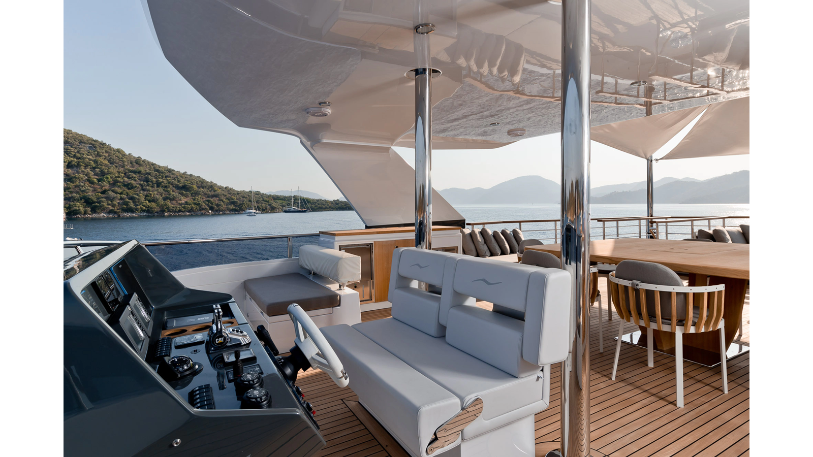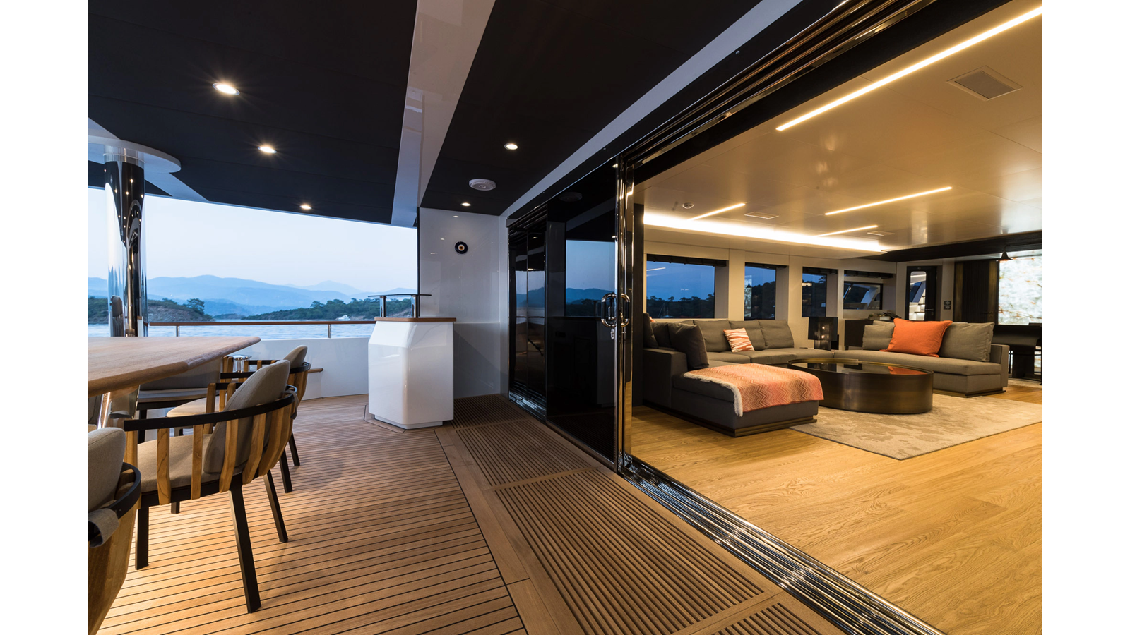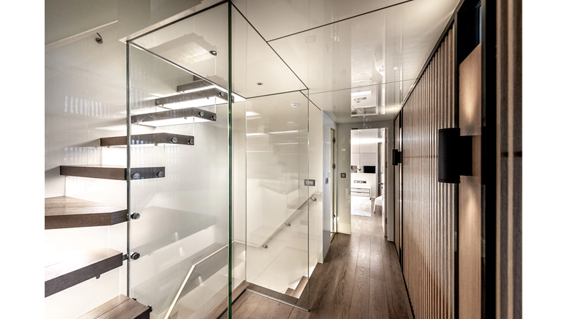 Opacmare Transformer IMO Tier III engines are an option and are essentially becoming required for new build deliveries in 2024 and later due to new EPA requirements. Her large open upper deck features a massive 2,500kg davit allowing you to carry up to a 8.5m tender plus additional water sports toys. (Hull #2 carries a 28ft Axopar on deck). A new layout created for North American clients features a country kitchen forward on the main deck allowing a more casual gathering place for guests and crew for meals.
