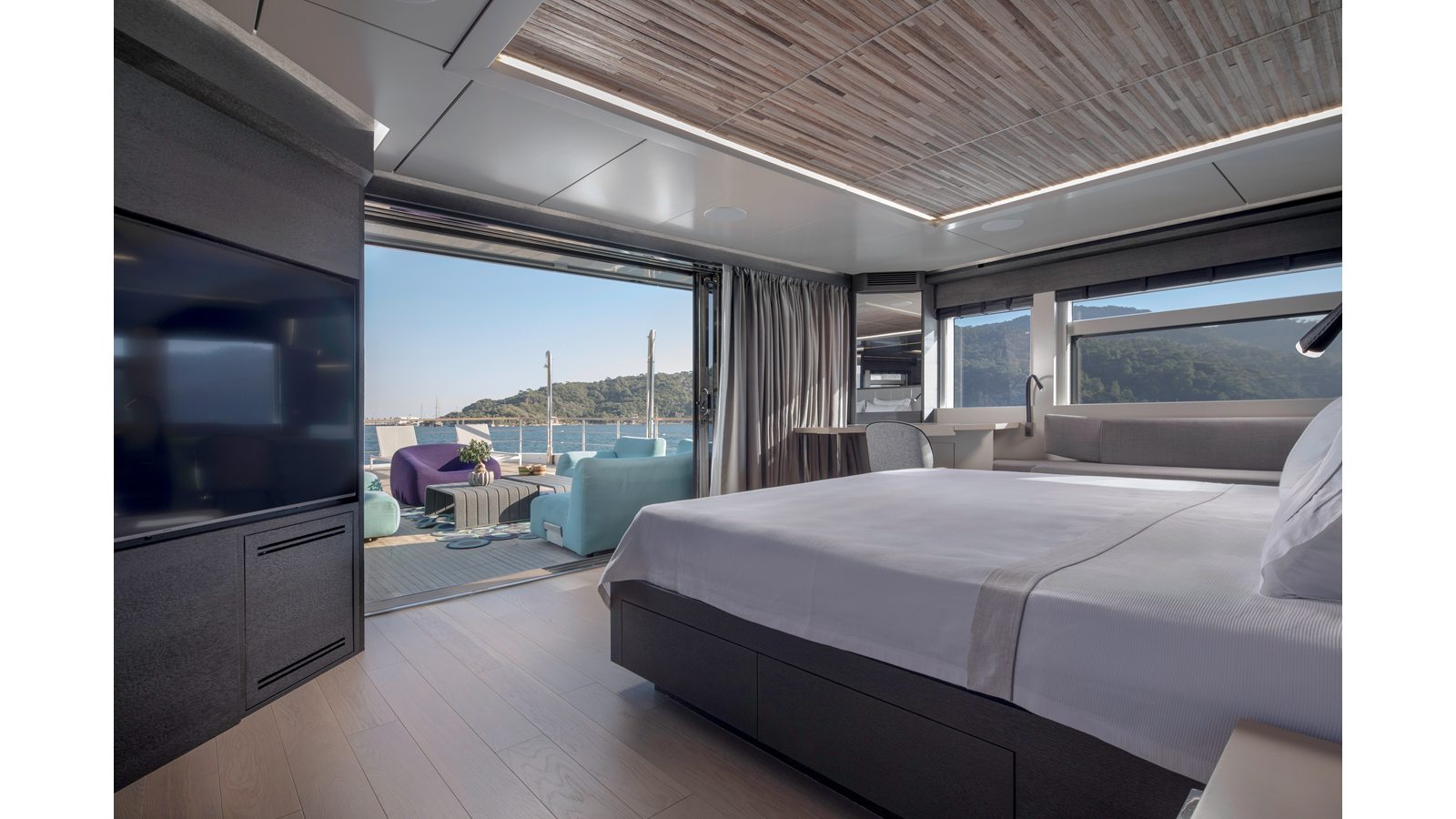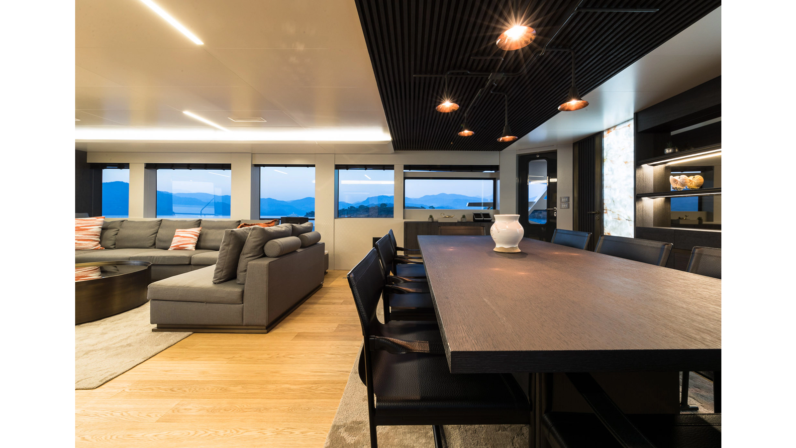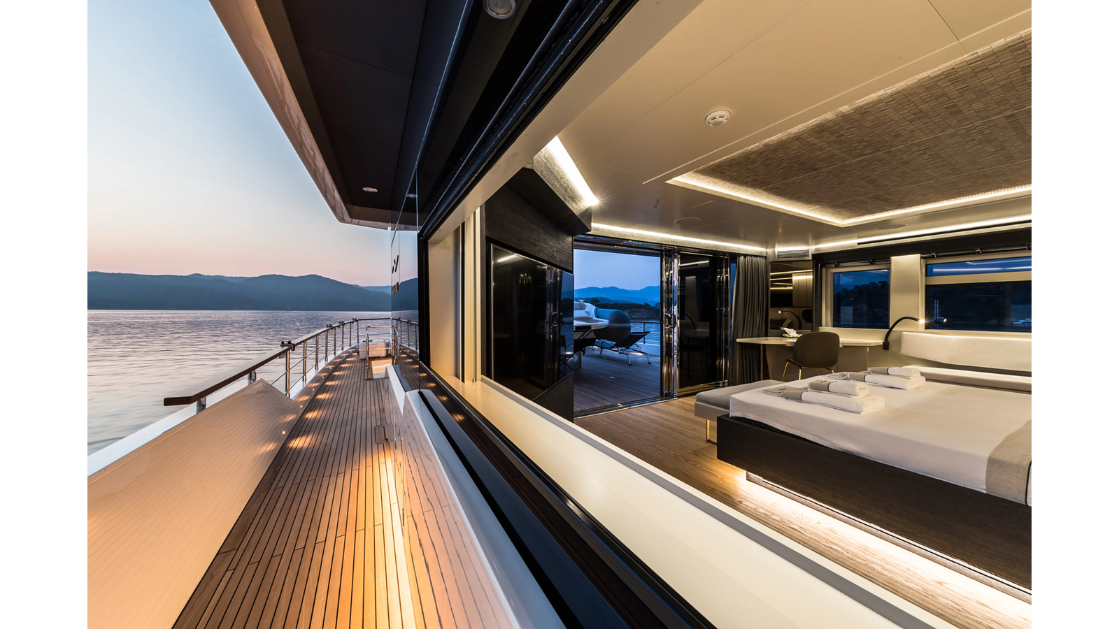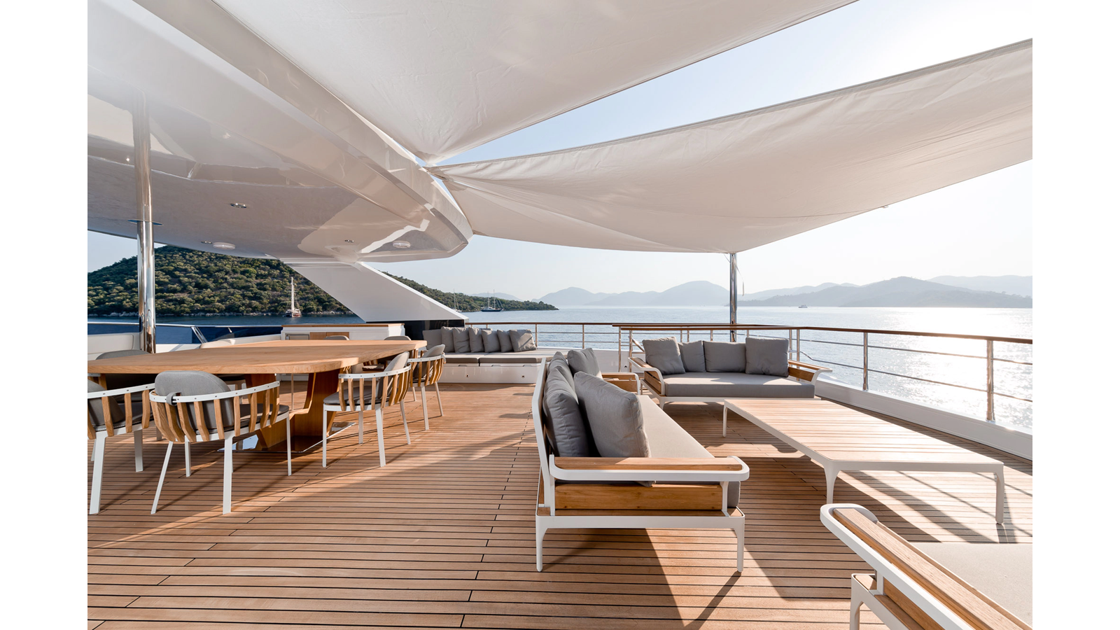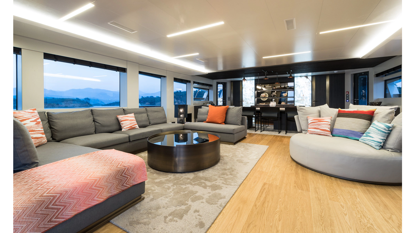 Opacmare Transformer IMO Tier III engines are an option and are essentially becoming required for new build deliveries in 2024 and later due to new EPA requirements. Her large open upper deck features a massive 2,500kg davit allowing you to carry up to a 8.5m tender plus additional water sports toys. (Hull #2 carries a 28ft Axopar on deck). A new layout created for North American clients features a country kitchen forward on the main deck allowing a more casual gathering place for guests and crew for meals.