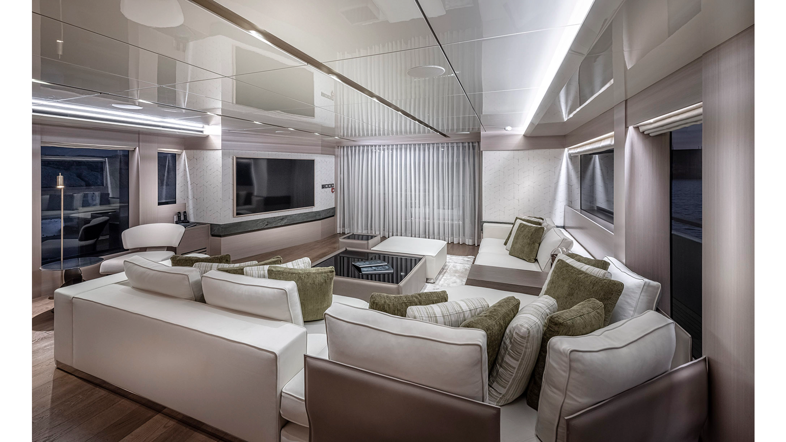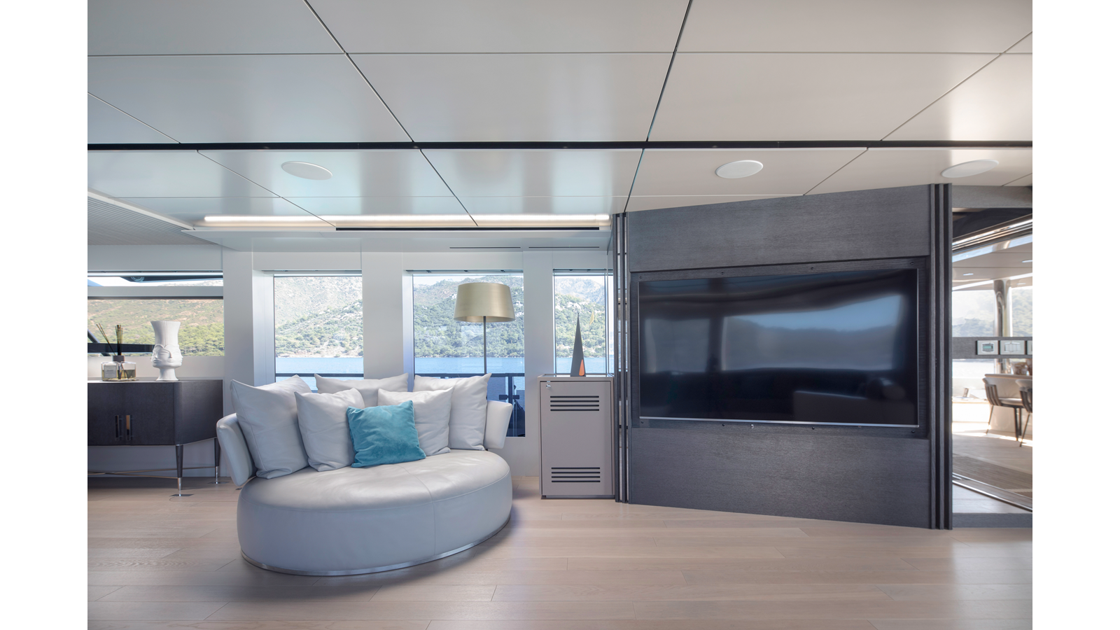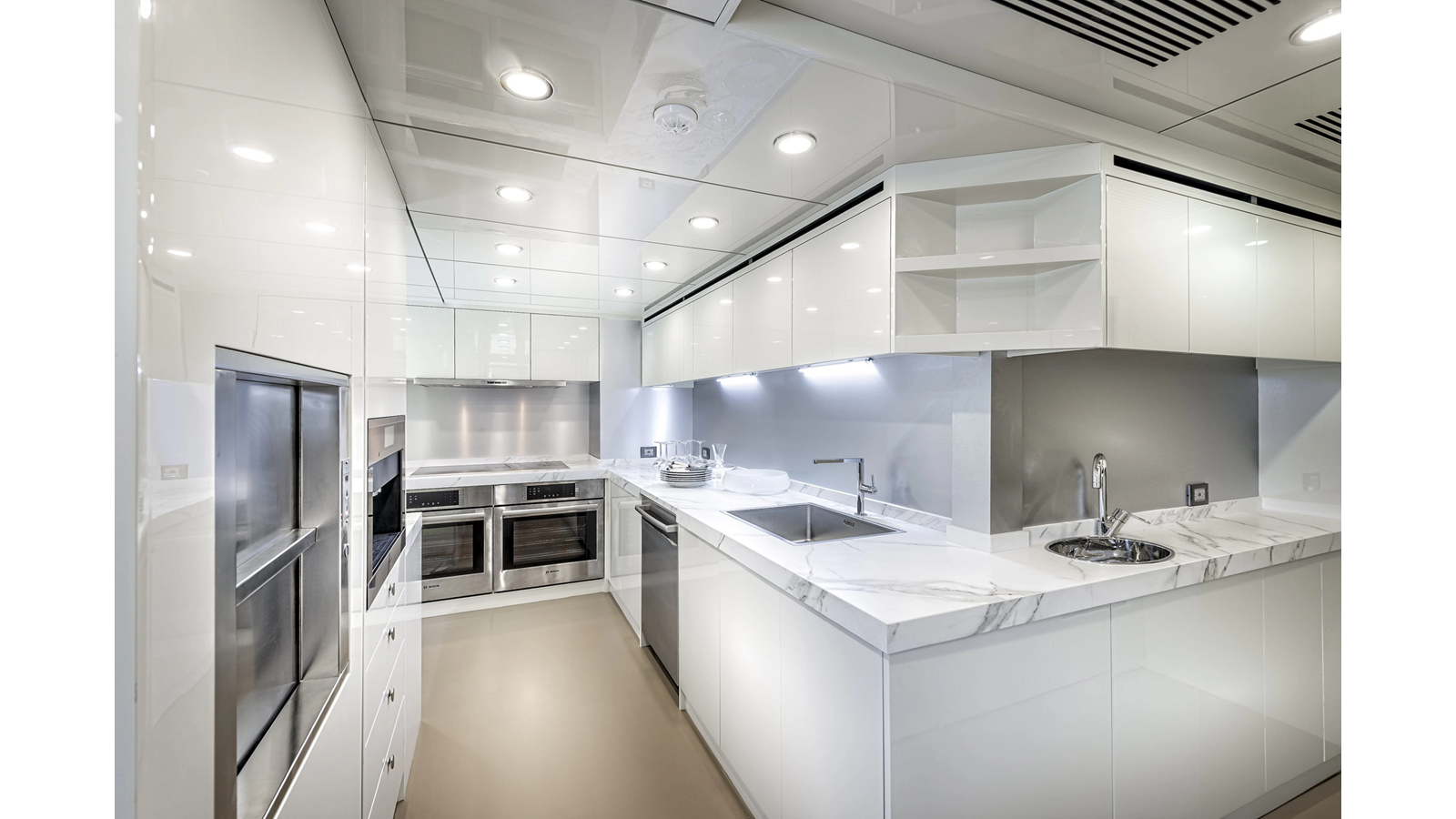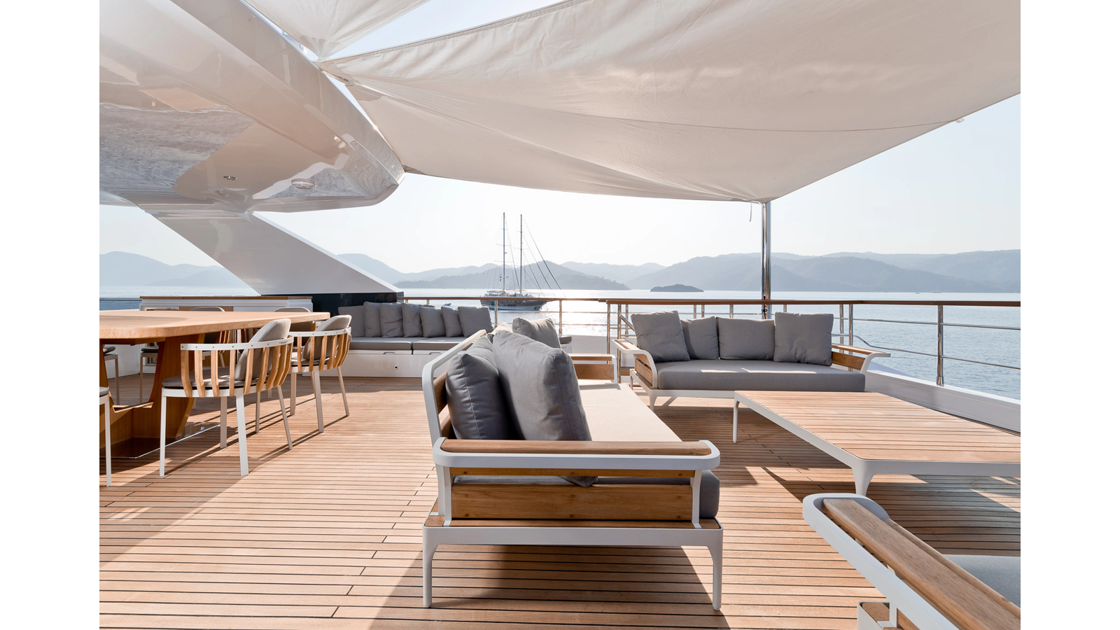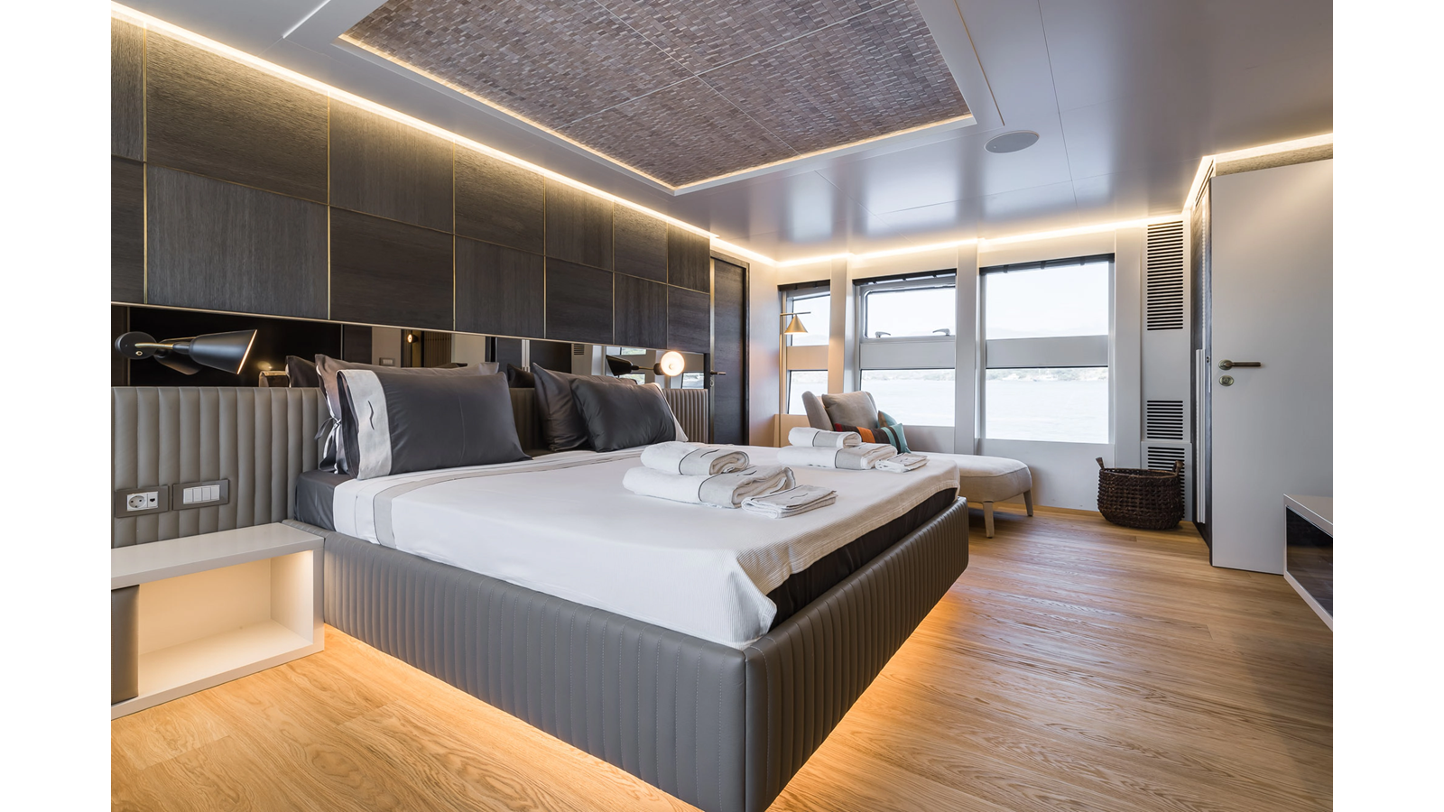 Opacmare Transformer IMO Tier III engines are an option and are essentially becoming required for new build deliveries in 2024 and later due to new EPA requirements. Her large open upper deck features a massive 2,500kg davit allowing you to carry up to a 8.5m tender plus additional water sports toys. (Hull #2 carries a 28ft Axopar on deck). A new layout created for North American clients features a country kitchen forward on the main deck allowing a more casual gathering place for guests and crew for meals.