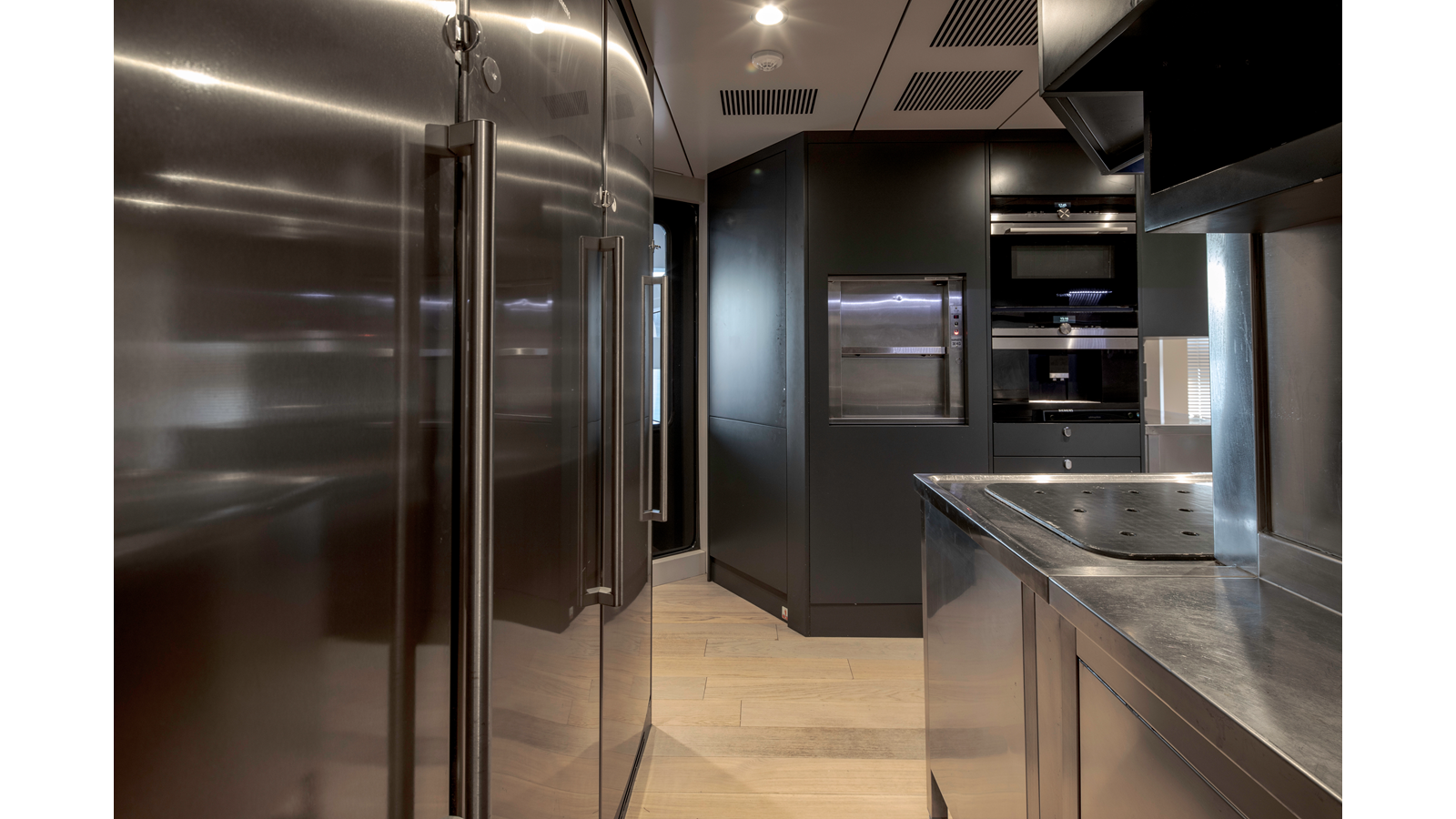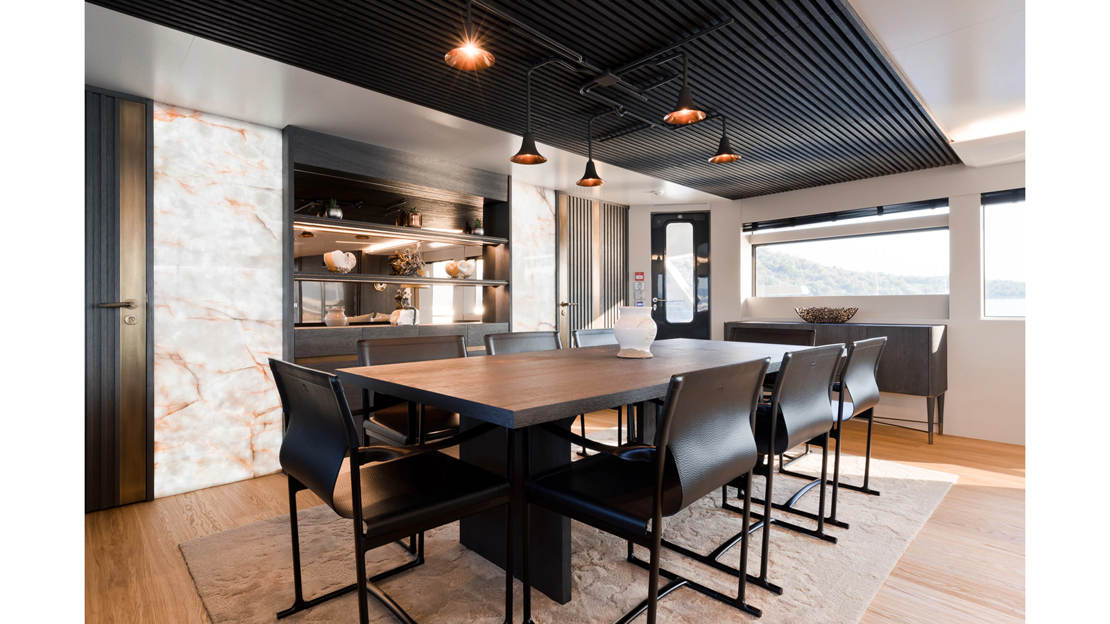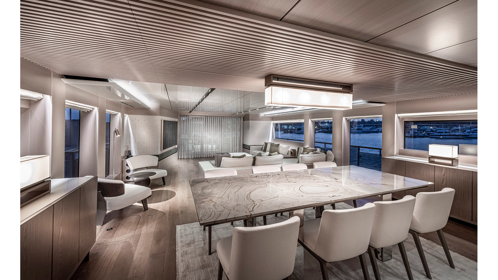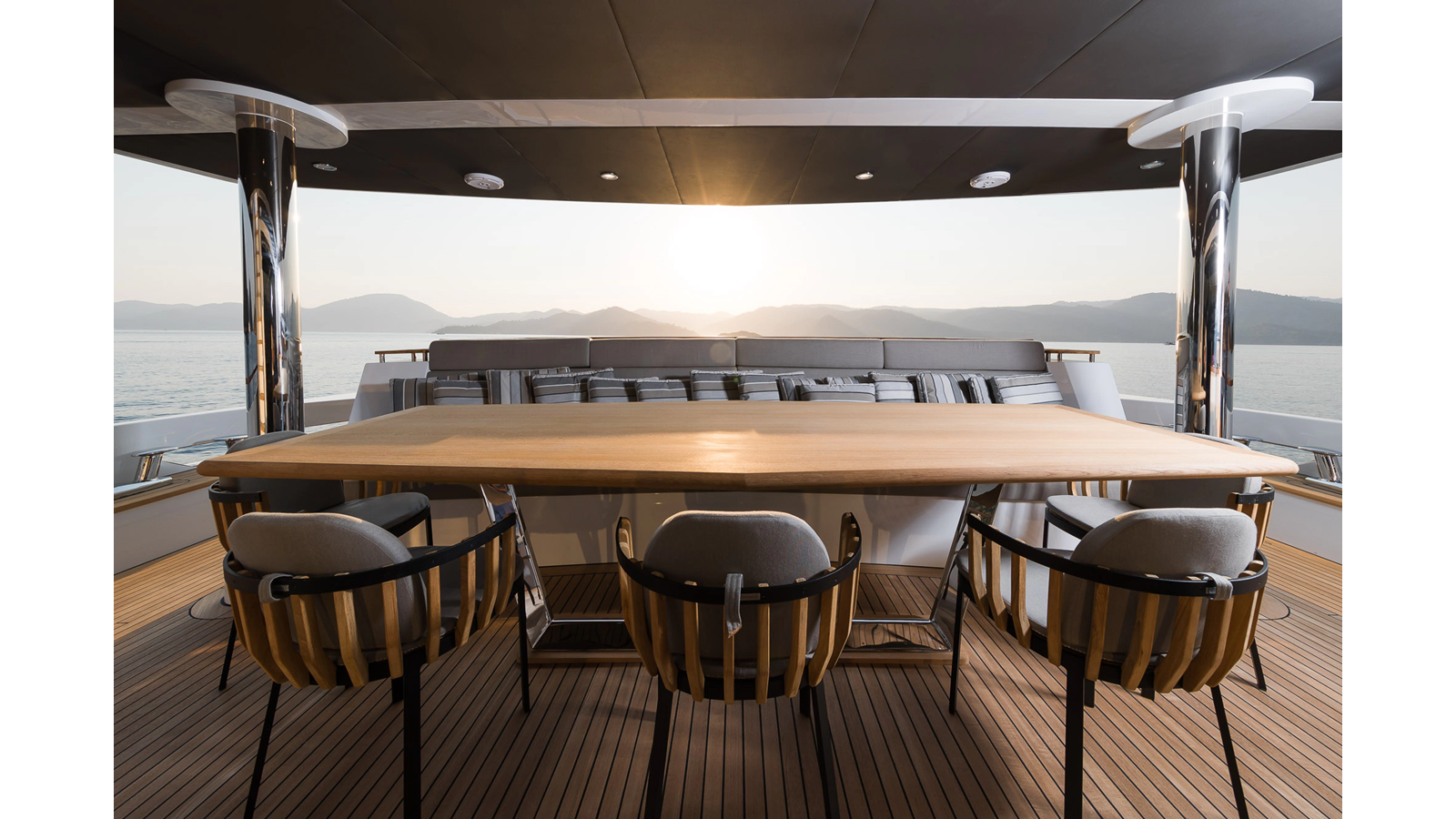 Opacmare Transformer IMO Tier III engines are an option and are essentially becoming required for new build deliveries in 2024 and later due to new EPA requirements. Her large open upper deck features a massive 2,500kg davit allowing you to carry up to a 8.5m tender plus additional water sports toys. (Hull #2 carries a 28ft Axopar on deck). A new layout created for North American clients features a country kitchen forward on the main deck allowing a more casual gathering place for guests and crew for meals.