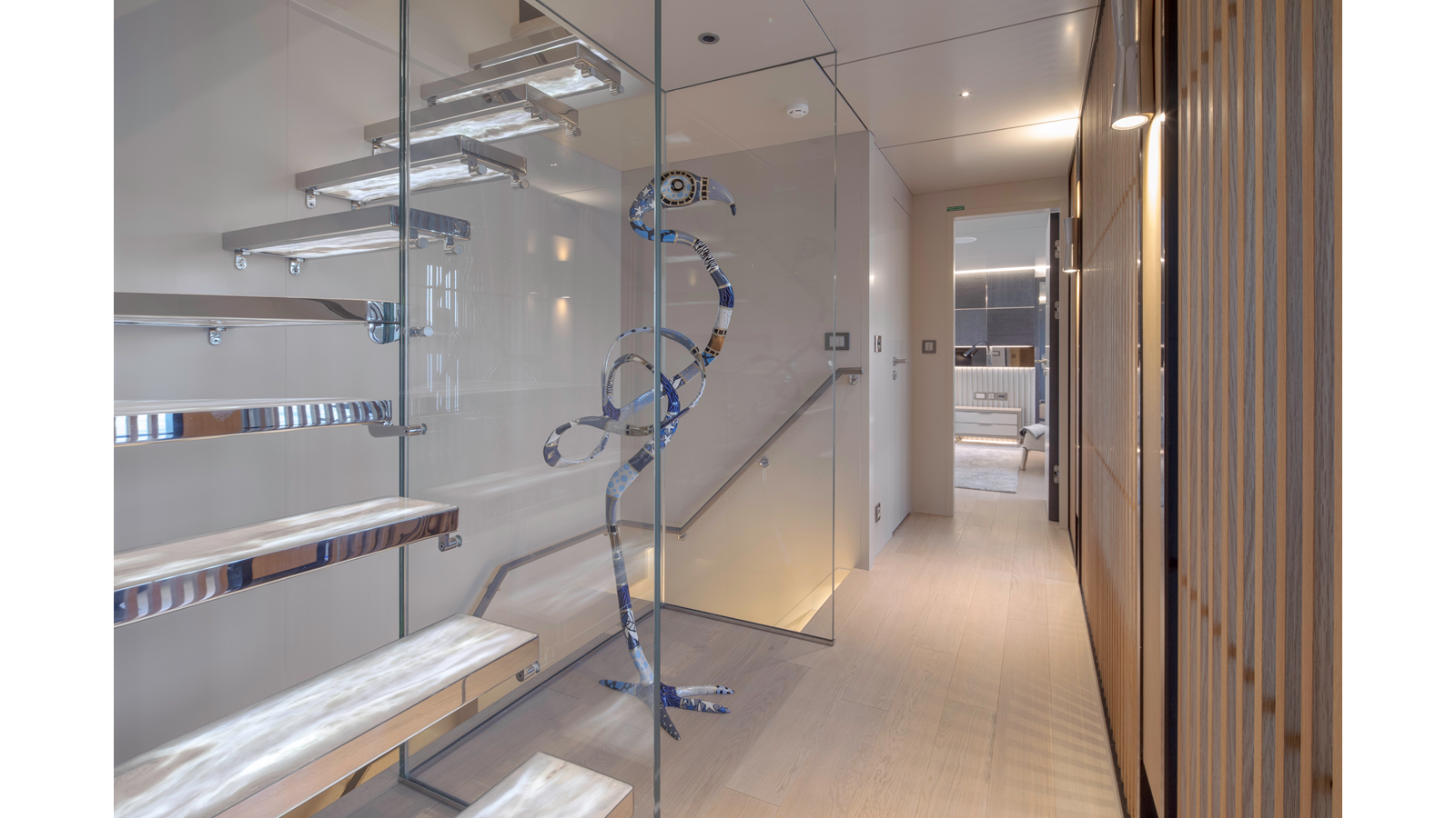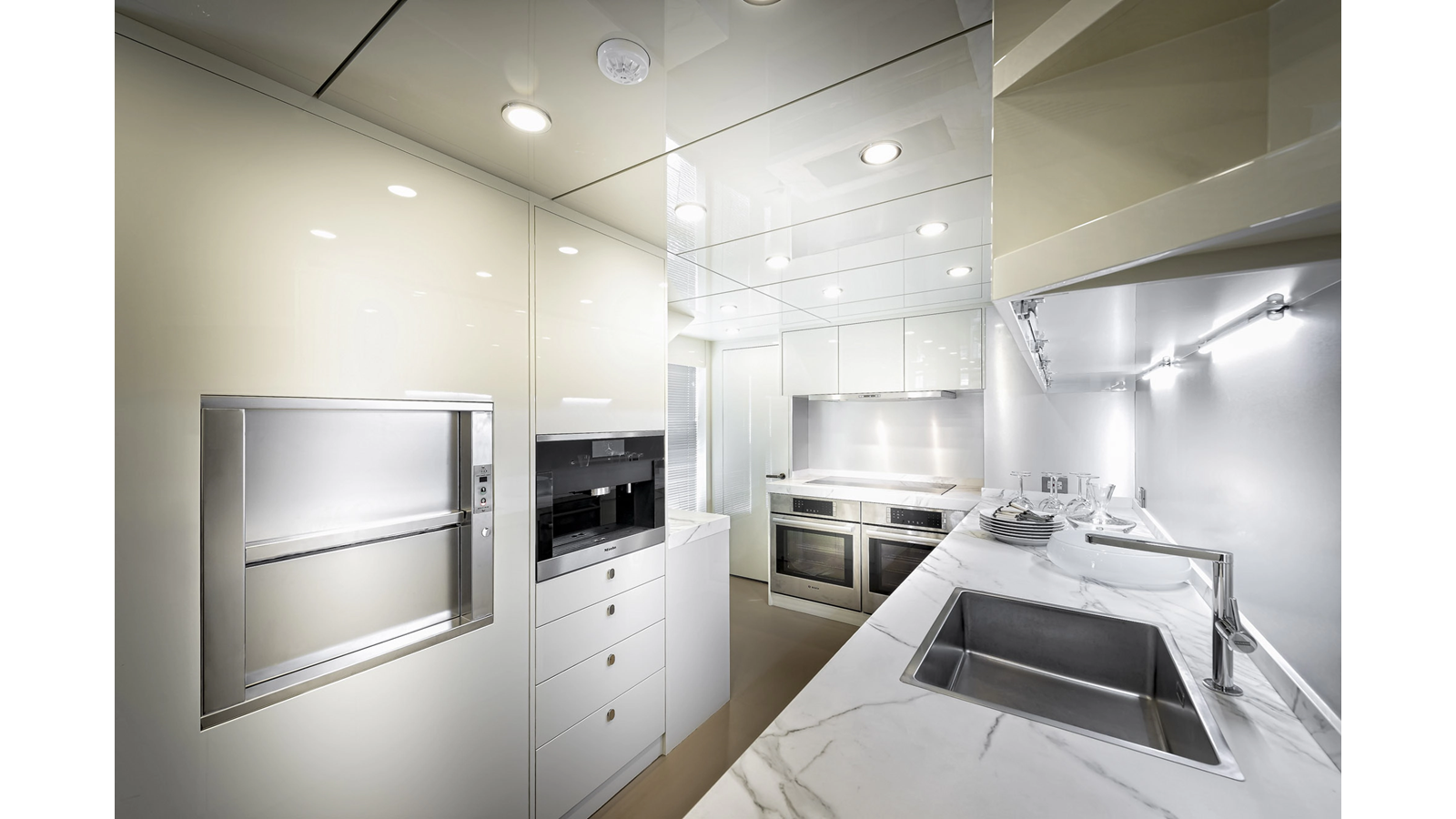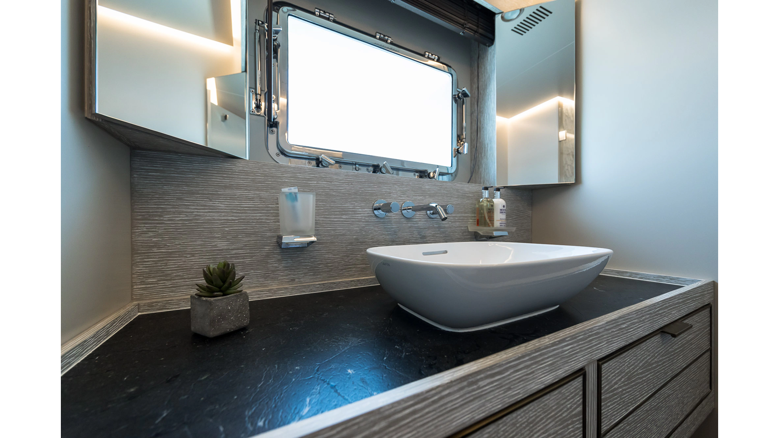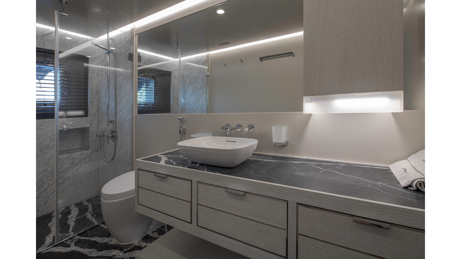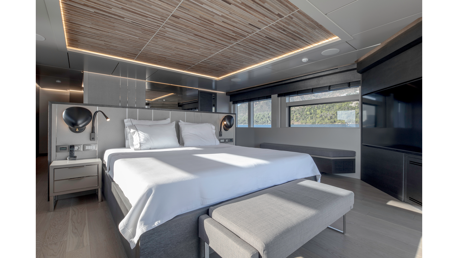Opacmare Transformer IMO Tier III engines are an option and are essentially becoming required for new build deliveries in 2024 and later due to new EPA requirements. Her large open upper deck features a massive 2,500kg davit allowing you to carry up to a 8.5m tender plus additional water sports toys. (Hull #2 carries a 28ft Axopar on deck). A new layout created for North American clients features a country kitchen forward on the main deck allowing a more casual gathering place for guests and crew for meals.