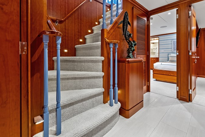 SILVER SEAS is a stunning 107-foot Burger Motor Yacht, an American aluminum classic that has undergone a comprehensive multi-year refit. Built in 1998 by the Burger Boat Company and designed by Don O’Keeffe, she was commissioned by an experienced yachtsman, reflecting the brand’s reputation for quality and longevity. Throughout her life, she has been well cared for by knowledgeable owners who valued her pedigree construction.