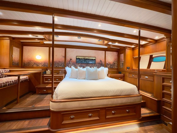 NAMUUN was the second Truly Classic 108 built and was delivered to her owner in 2012, who named her SIMBA. The yacht spent several years in the Eastern Mediterranean, whereafter her second and current owner used her in the Western Mediterranean and the Caribbean. NAMUUN received a substantial overhaul and refit as described in this brochure, which was executed by the experts of Pendennis Shipyards in the UK in 2024/2025, transforming her into a near new yacht. With a layout including 4 cabins sleeping 8 guests, she provides an elaborate accommodation rarely seen on this type of yacht at this size. The yacht has been kept in private Bureau Veritas class and to achieve charter compliance should be possible. NAMUUN handles very nicely with her slab-reef mainsail onto a park Avenue boom and hydraulic furlers on the head sails. On a reach she will do 13 kts in 20 kts of wind. The alfresco dining and socialising in the centre cockpit are a great feature as well as the spacious aft working cockpit and the designated Captains/ Navigation deckhouse. The main deckhouse allows for dining and socialising and going down the stairs forward, there is a vey nice salon for relaxing and TV watching. NAMUUN boasts an great full beam master cabin with en-suite in the aft section of the yacht. In the forward section are the galley, the crew mess and the crew accommodations. With the extent of all the work done and her great condition, NAMUUN is a rare find; here is a great chance to acquire a beautiful 108ft Truly Classic yacht.