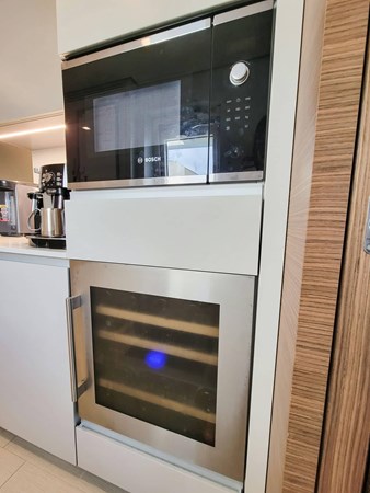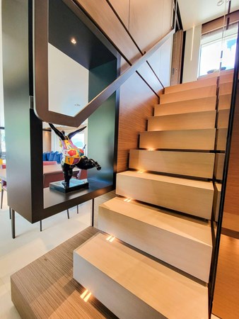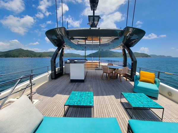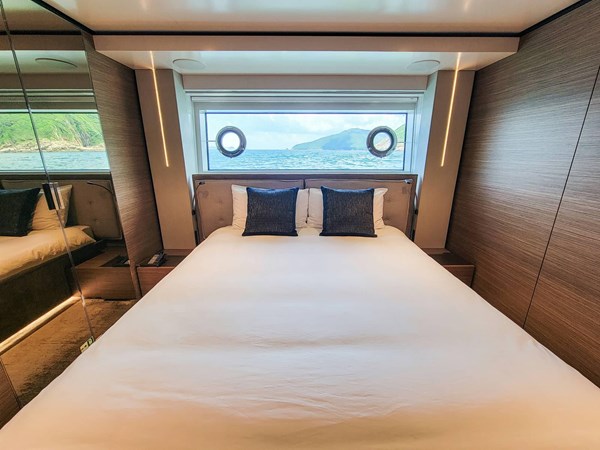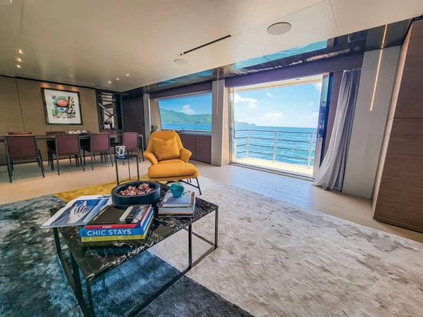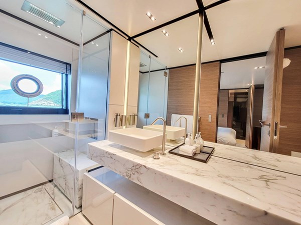 Step inside to find interiors that reflect both the Navetta 33’s vision and the owner’s unique character. The wide-body master suite on the main deck and the stylish guest cabins below set a standard of elegance. The yacht offers fabulous spaces across all four decks, featuring expansive windows and a sun deck with a jacuzzi​.