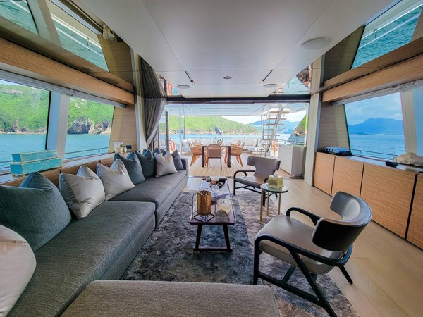 Custom Line’s cutting-edge technology ensures comfort and stability in all conditions. The patented Dual Mode Transom system expands living and entertainment spaces, making the stern area an ideal spot for relaxation.