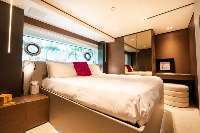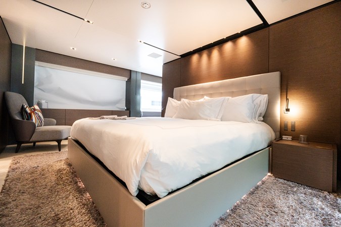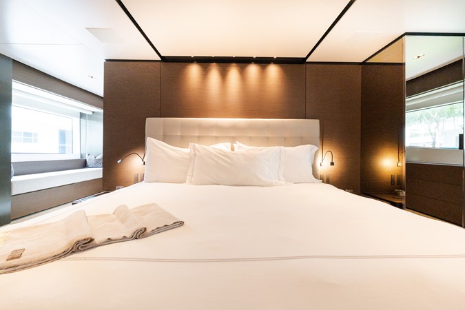 AMITY is a 2018 Custom Line Navetta 33 built by Custom Line, part of the Ferretti Group, offering the proven long-range cruising platform and interior volume that have made the Navetta series a mainstay in the 30–35 meter market. Designed with transatlantic capability and guest comfort in mind, she features a full-beam main deck owner’s suite, four additional guest staterooms below, and multiple outdoor living areas including a generous flybridge and aft beach club. With her displacement hull providing efficient cruising and excellent stability, AMITY presents a compelling opportunity for an owner seeking a well-regarded 33-meter platform with substantial space and capability.
