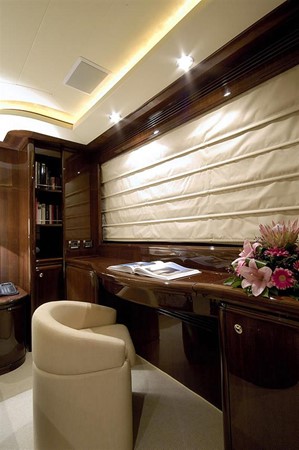 These wide-open spaces are matched by similar surprising generosity in the engine room. The standard motors are 2,775-hp MTU V12s, which are pretty big lumps. Nevertheless they luxuriate in a massive engine room.