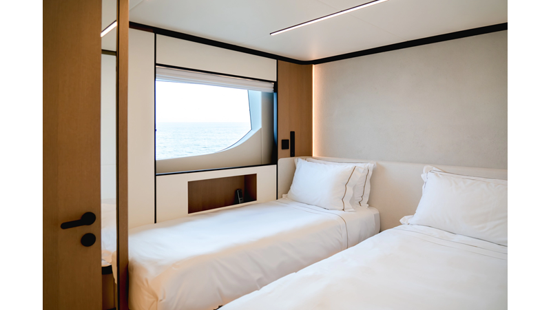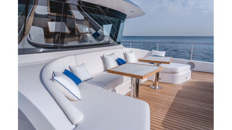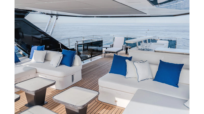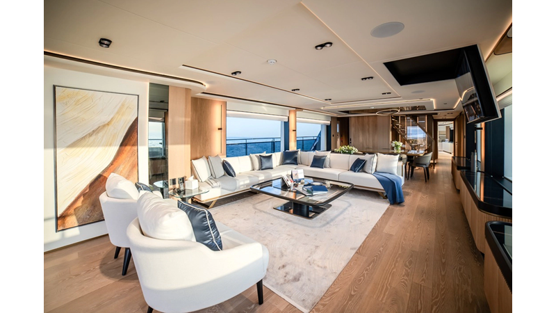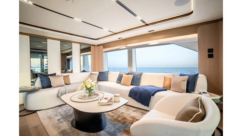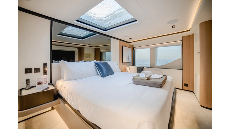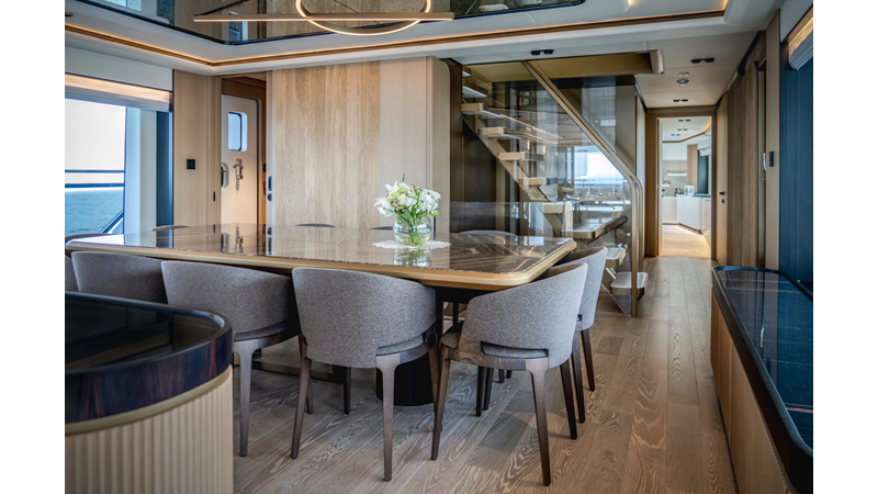 With accommodations for 12 guests across five beautifully appointed staterooms and six crew, the Majesty 112 is built for entertaining in refined comfort. Expansive decks offer multiple alfresco lounges and dining spaces ideal for hosting or relaxing at sea, while the spacious salon, framed by panoramic windows, welcomes guests with sweeping views and abundant natural light. Sophisticated furnishings and rich materials create an atmosphere of timeless elegance throughout.