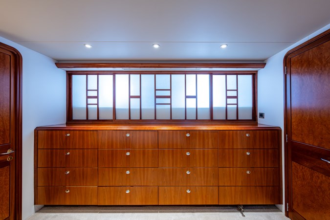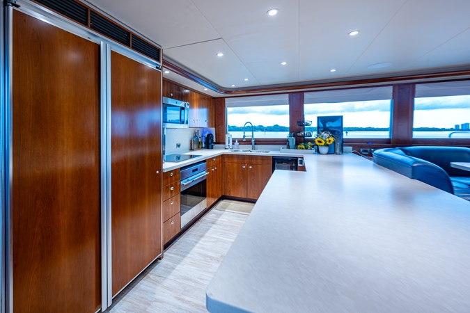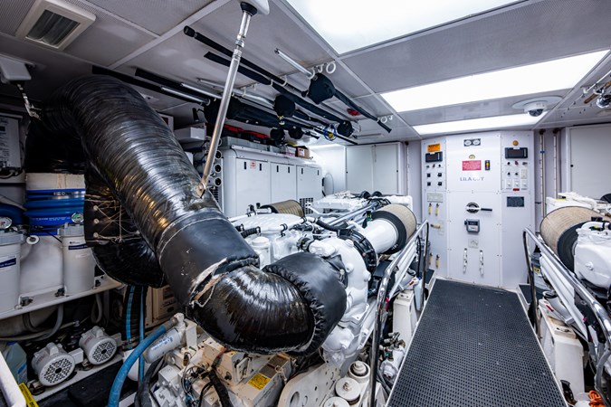 In 2025, she underwent a yard period at Safe Harbor Rybovich, receiving a full bottom job, stabilizer service, windlass rebuild, bow thruster overhaul, and davit paint. Upgrades included new exhaust risers, hot water heater, master cabin wall paneling, and refreshed countertops in the owner’s head.