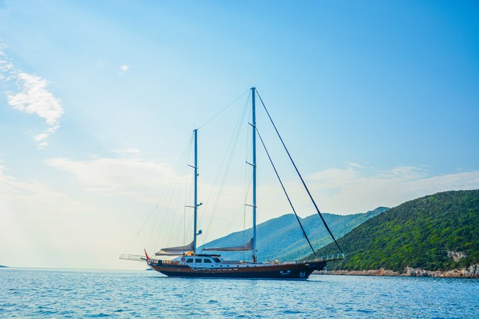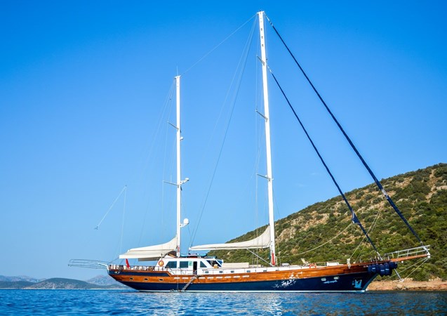 This 34-meter steel gulet , built in 2007, is in very good, well-maintained condition . She offers 5 guest cabins , a spacious interior with generous volumes , and wide deck areas that are comfortable and functional. Her exterior has well-balanced proportions , while the interior benefits from a layout that feels open and airy.