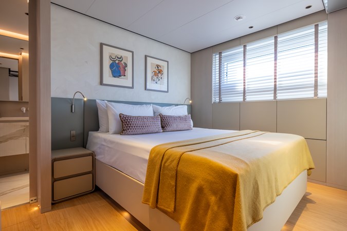 Designed by Francesco Paszkowski, the 2023 CDM Stellamar blends timeless elegance with the purposeful strength of an explorer yacht. Her dynamic profile is defined by extensive use of glass in the bulwarks, an open stern, and beautifully sculpted lines that maintain a continuous visual dialogue with the sea. Paszkowski’s creativity shines in the generous volumes and luxurious amenities he achieved within her 35m footprint.