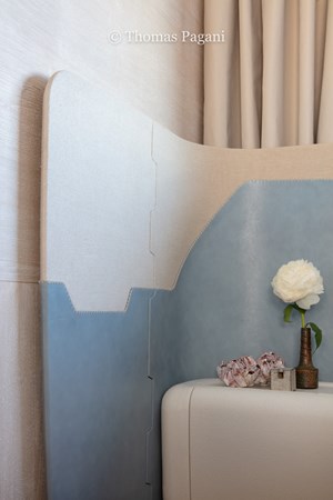 Inside, Mouchka offers a sophisticated beach-villa interior design by Parisian studio Bismut & Bismut. The main deck features a full-beam master suite with private access to a forward terrace, while four additional guest cabins below deck accommodate up to 8 guests in total comfort. Expansive lounges, a bright sky lounge, and multiple outdoor dining and relaxation areas ensure a welcoming environment for every occasion.