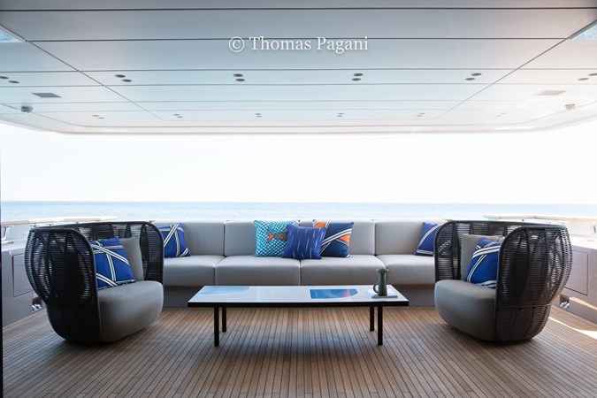 Powered by twin Caterpillar C32 engines, Mouchka reaches a top speed of 18 knots and cruises smoothly at 9 knots. From her spacious sundeck to her beach-club-style aft platform, she’s built for relaxed cruising and elegant entertaining.