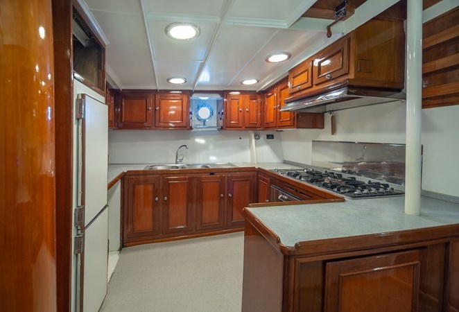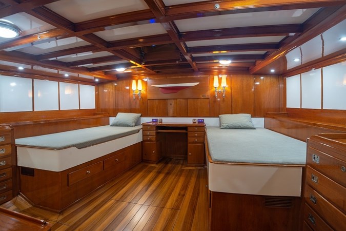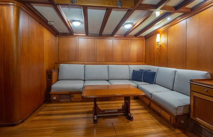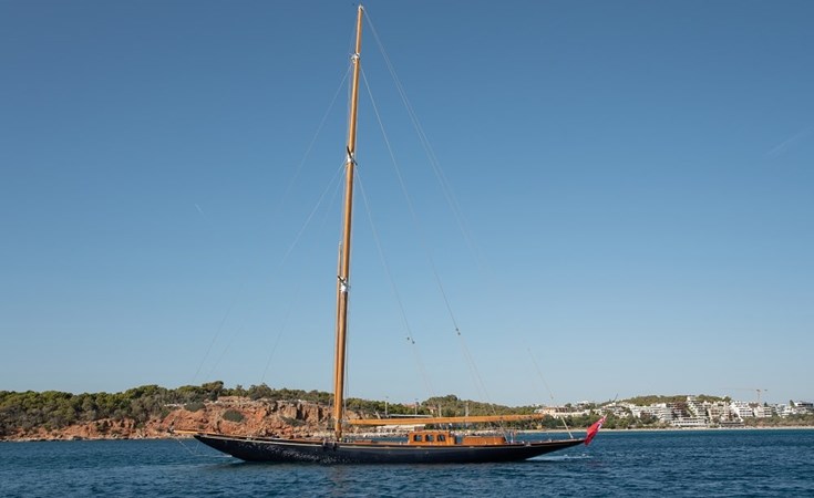 She is powered by CAT engines of 322 hp each giving her a maximum speed of 11 knots and a cruising speed of 10 knots. The sailing yacht can accommodate 6 guests in cabins and an exterior design by Charles E. Nicholson.