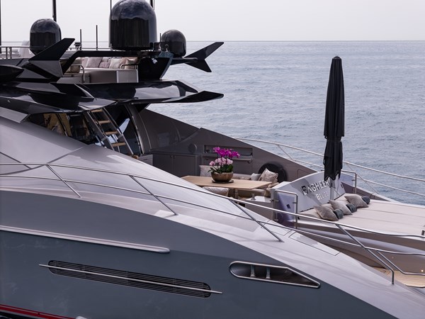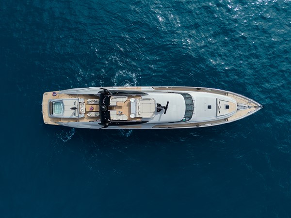 BAGHEERA stands apart as the only PJ 120′ boasting a breathtaking infinity-edge Jacuzzi overlooking the ocean, providing a unique vantage point for enjoying the stunning Mediterranean views.