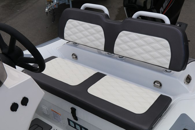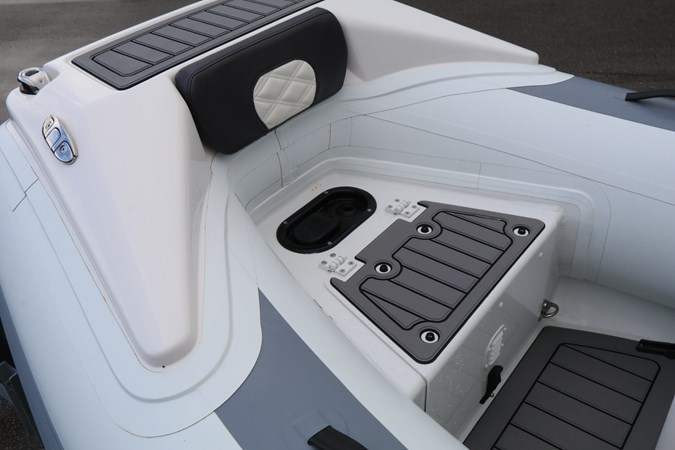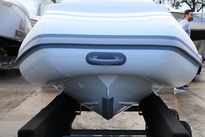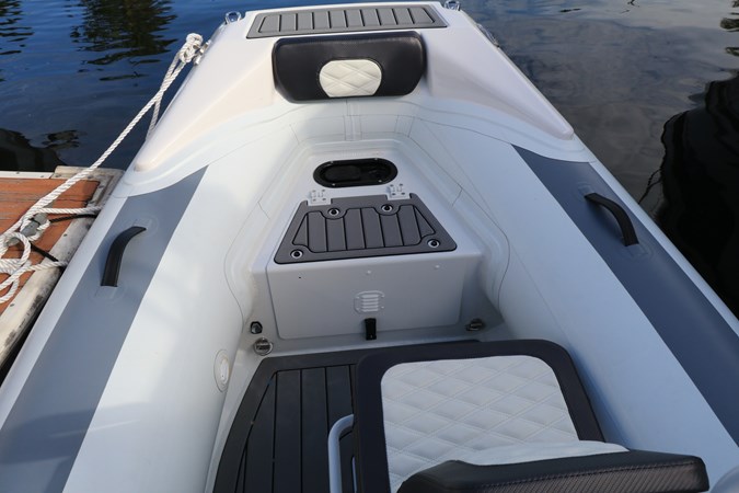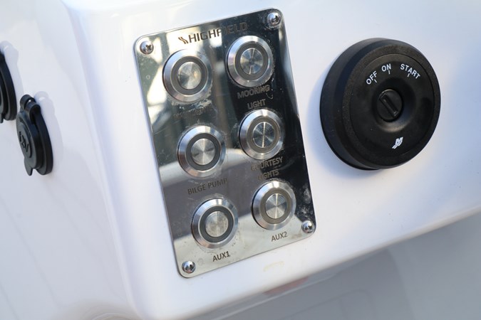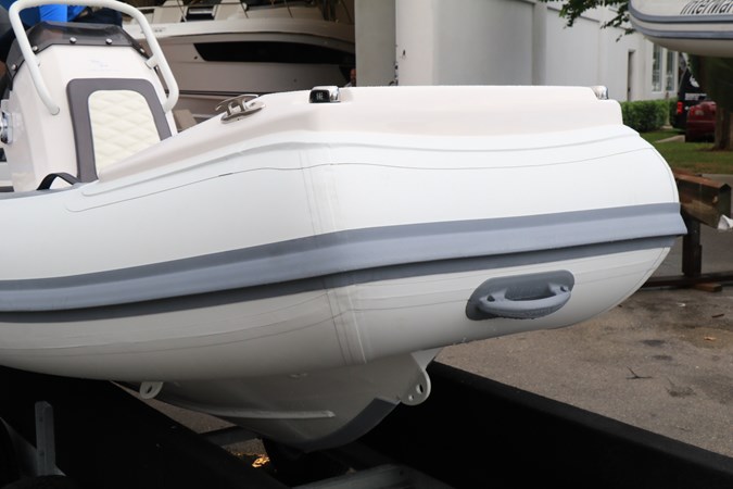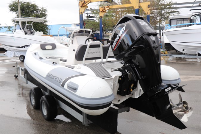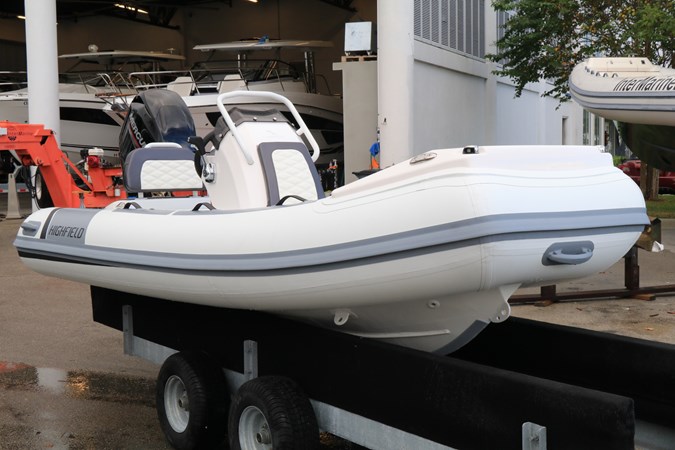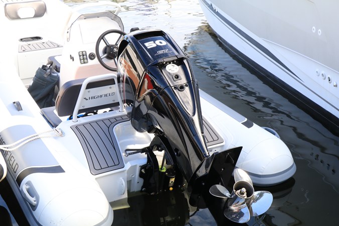 The 2023 Highfield SP390 is a premium 12’10” rigid inflatable boat (RIB) designed for versatility and performance. Built with a high-tensile chromated and powder-coated aluminum hull, it features welded lift strakes, ensuring a stable and dry ride even in challenging conditions. The boat is powered by a 50hp outboard motor and includes an integrated 8-gallon fuel system, making it ideal for use as a luxury tender or for recreational day trips.​ The deck is finished with EVA brushed foam teak, providing a stylish and durable surface. For storage, the SP390 offers three compartments with hydraulic-assisted lids, and the boat is rated for up to 7 passengers.