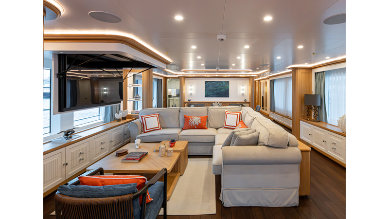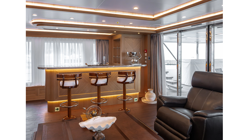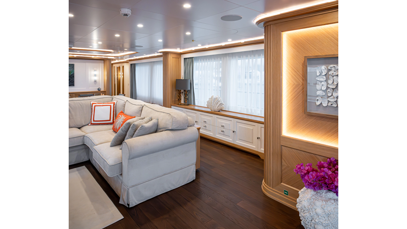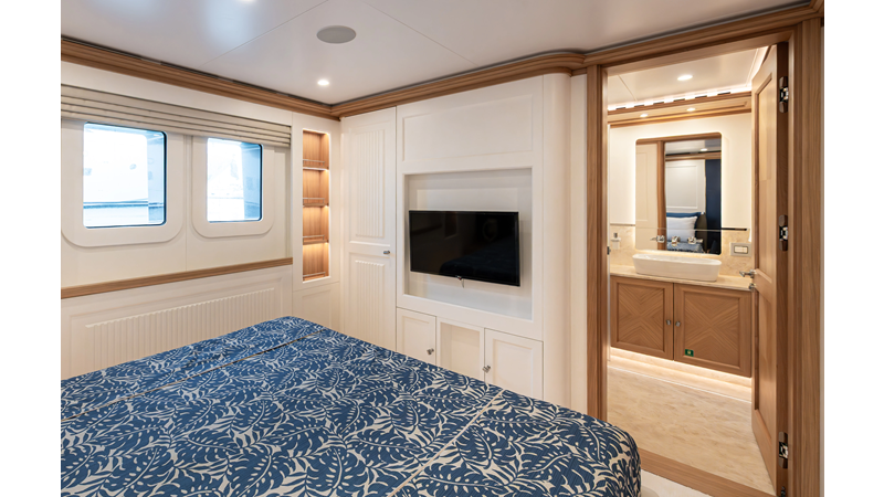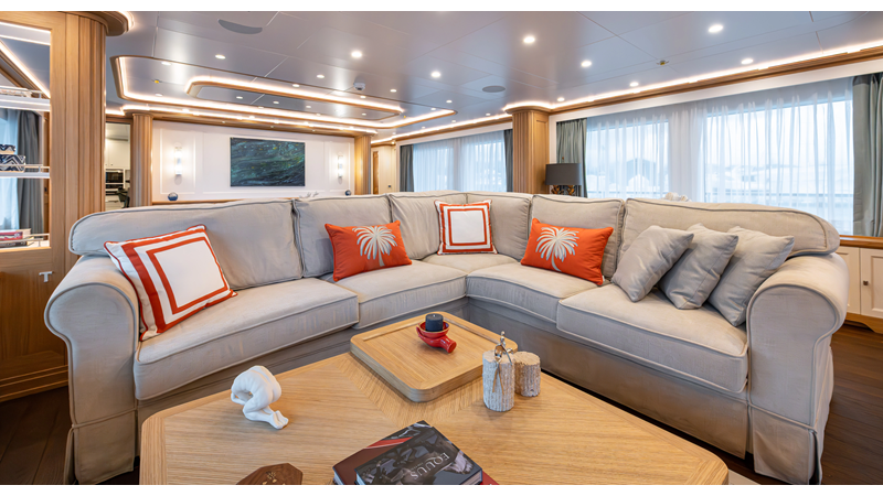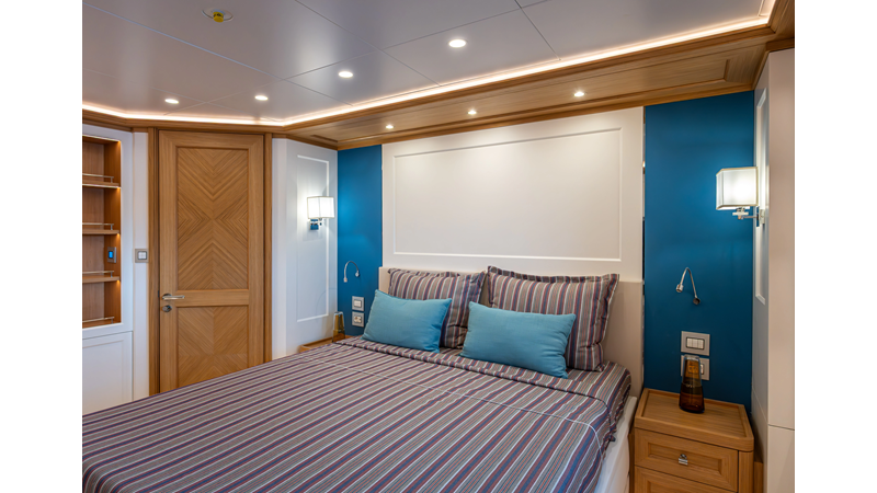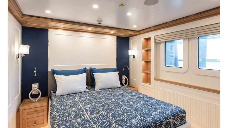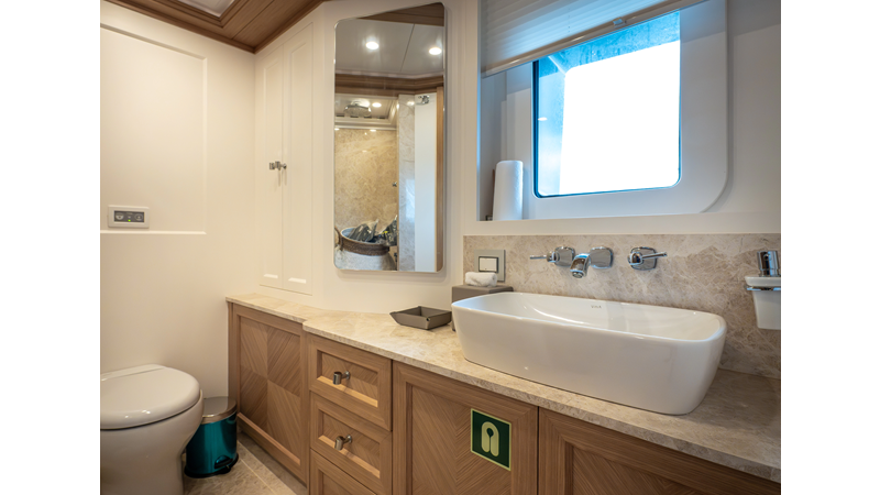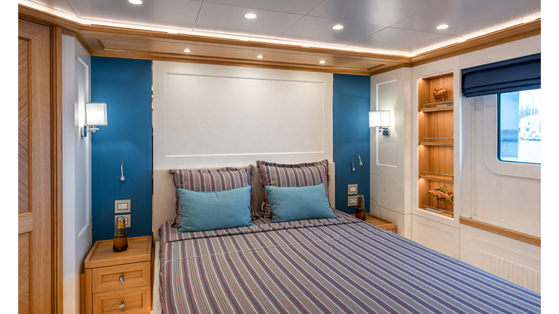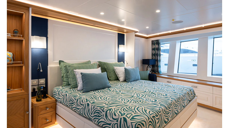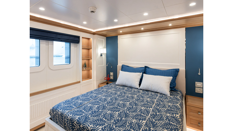 SEVEN SEAS has a timeless interior decor by Epikworks Interior Design and comfortably sleeps 10 guest in 5 cabins including a spacious on-deck master. A 4,000kg davit located on the upper deck can accommodate a substantial tender. Her Caterpillar C32 giver her a range of 3,600nm at cruise speed. She is built to commercial class and built for true blue water cruising.