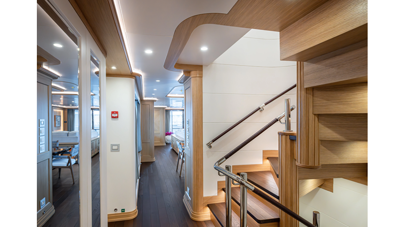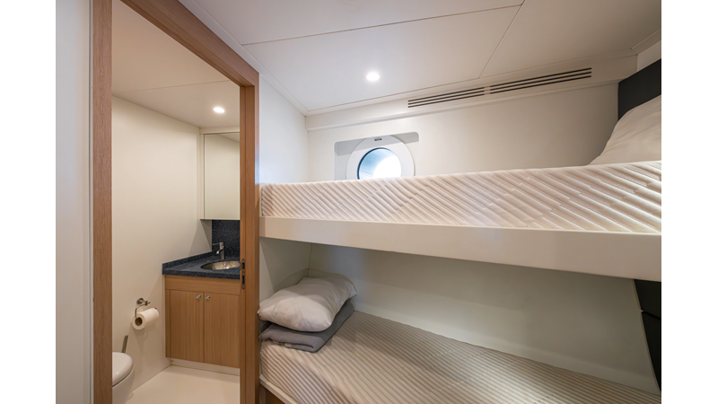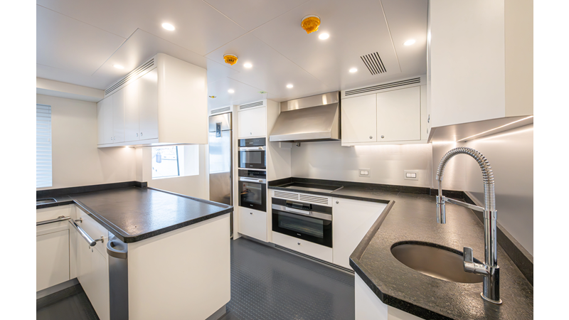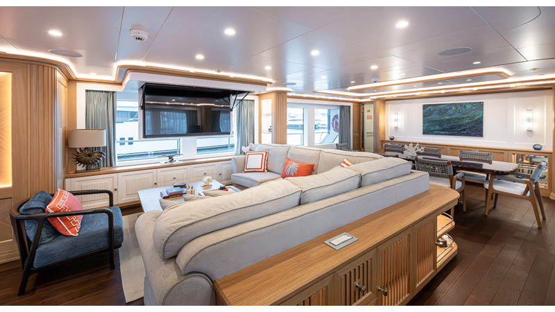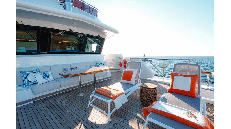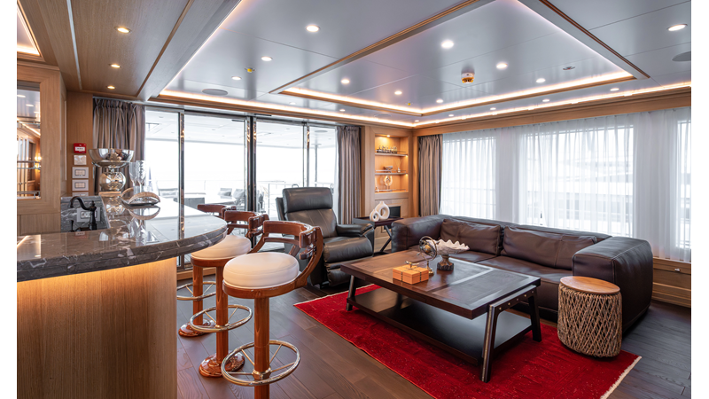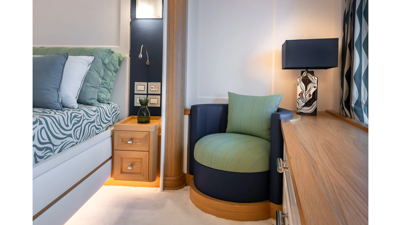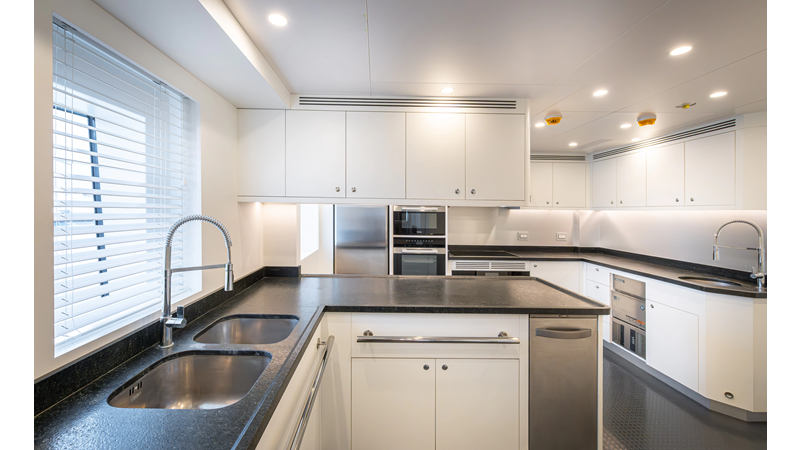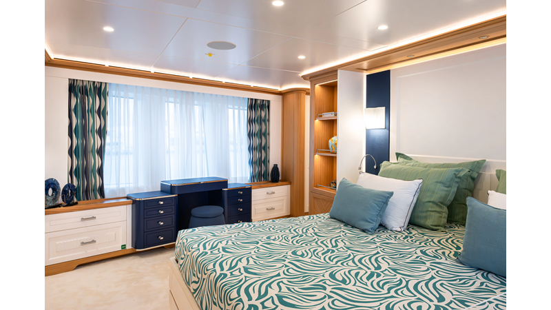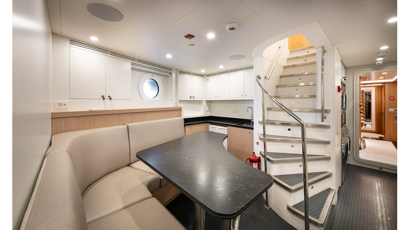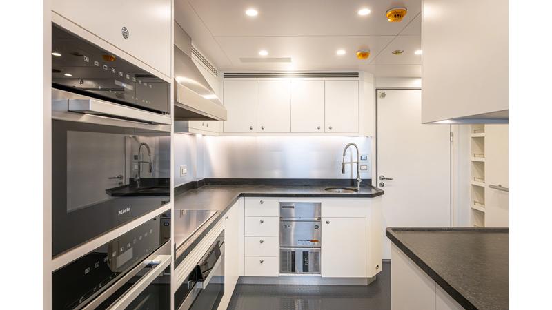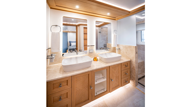 SEVEN SEAS has a timeless interior decor by Epikworks Interior Design and comfortably sleeps 10 guest in 5 cabins including a spacious on-deck master. A 4,000kg davit located on the upper deck can accommodate a substantial tender. Her Caterpillar C32 giver her a range of 3,600nm at cruise speed. She is built to commercial class and built for true blue water cruising.